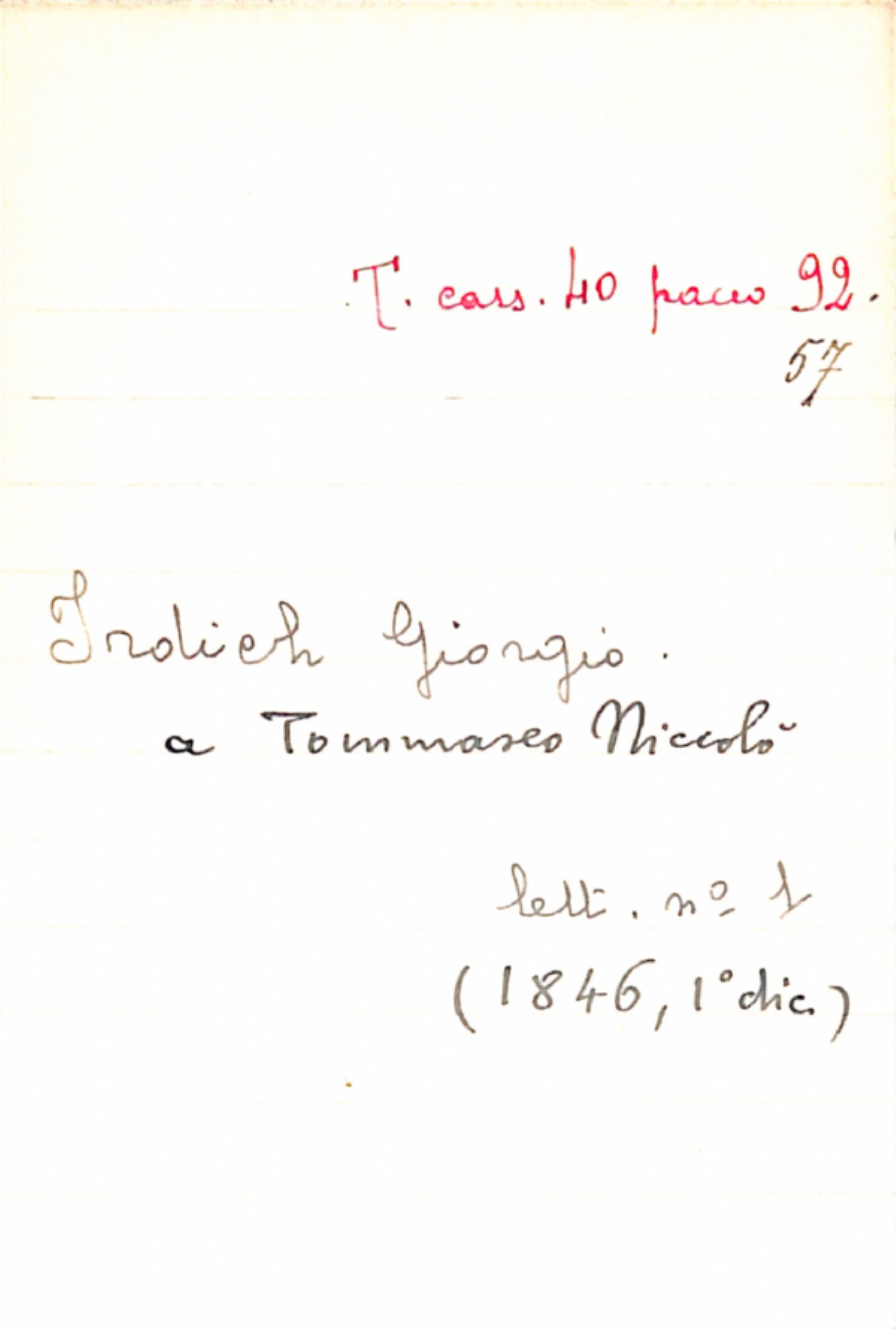 Fascicolo Irdich, Giorgio a Tommaseo, Niccolò