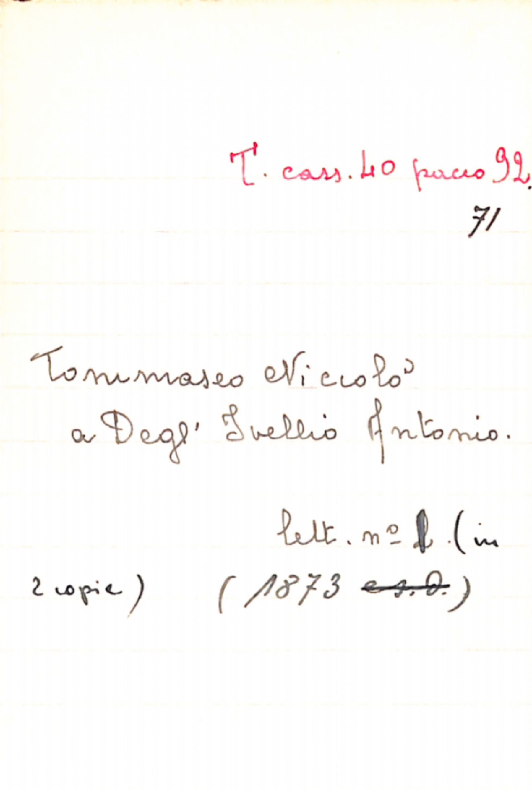 Fascicolo Tommaseo, Niccolò a Degl'Ivellio, Antonio