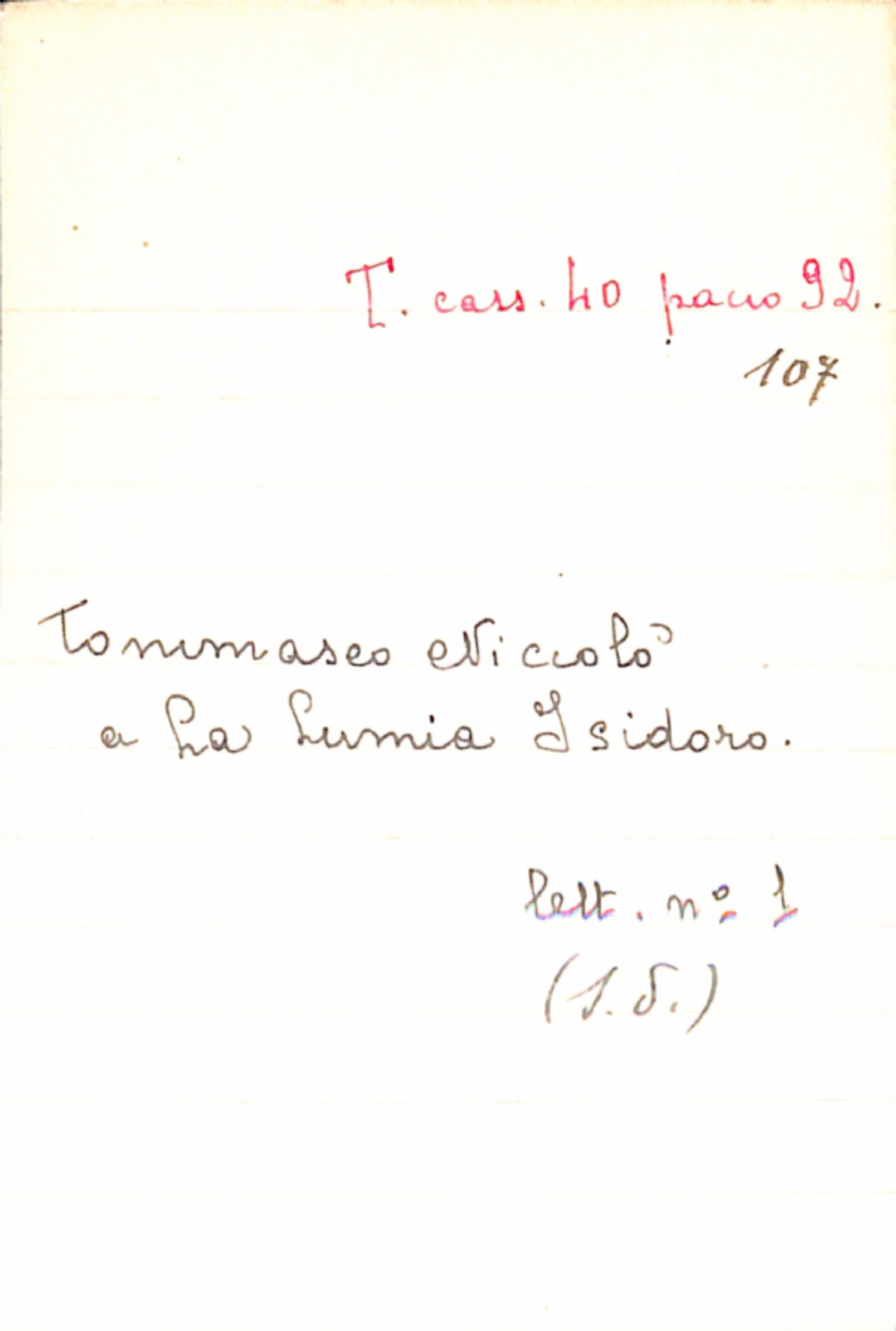 Fascicolo Tommaseo, Niccolò a La Lumia, Isidoro