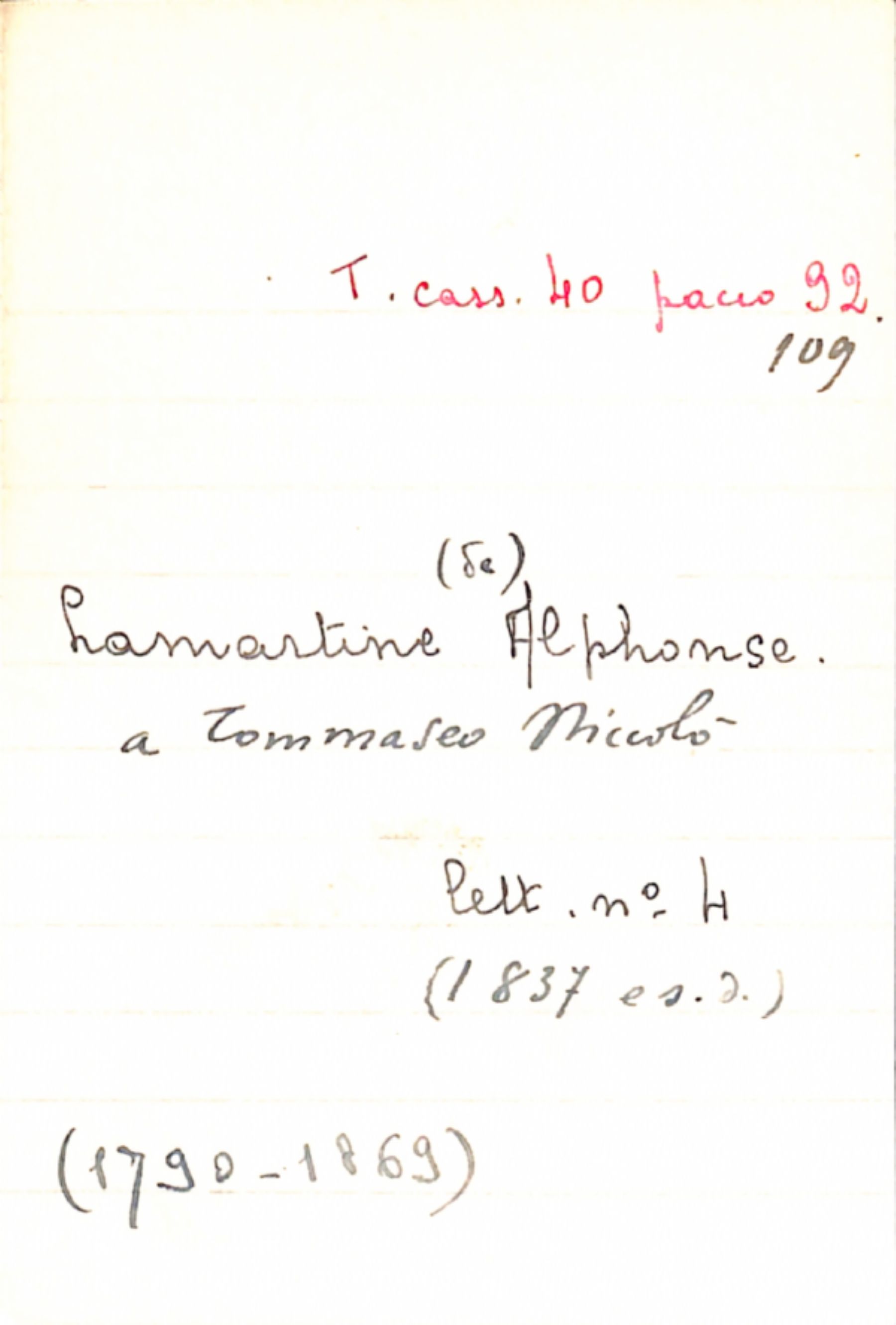 Fascicolo Lamartine (de), Alphonse a Tommaseo, Niccolò
