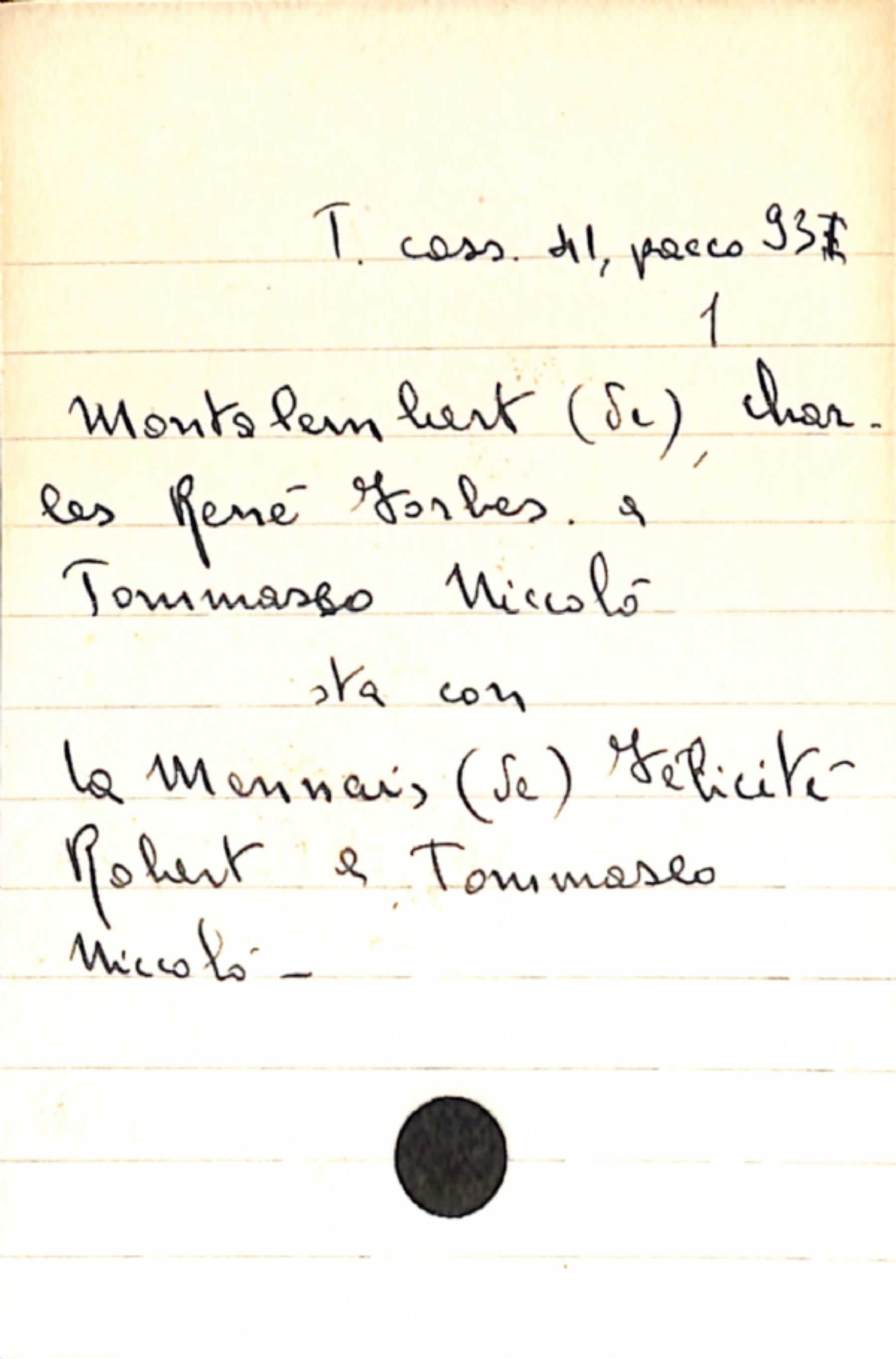 Fascicolo Montalembert (de), Charles René Forbes a Tommaseo, Niccolò