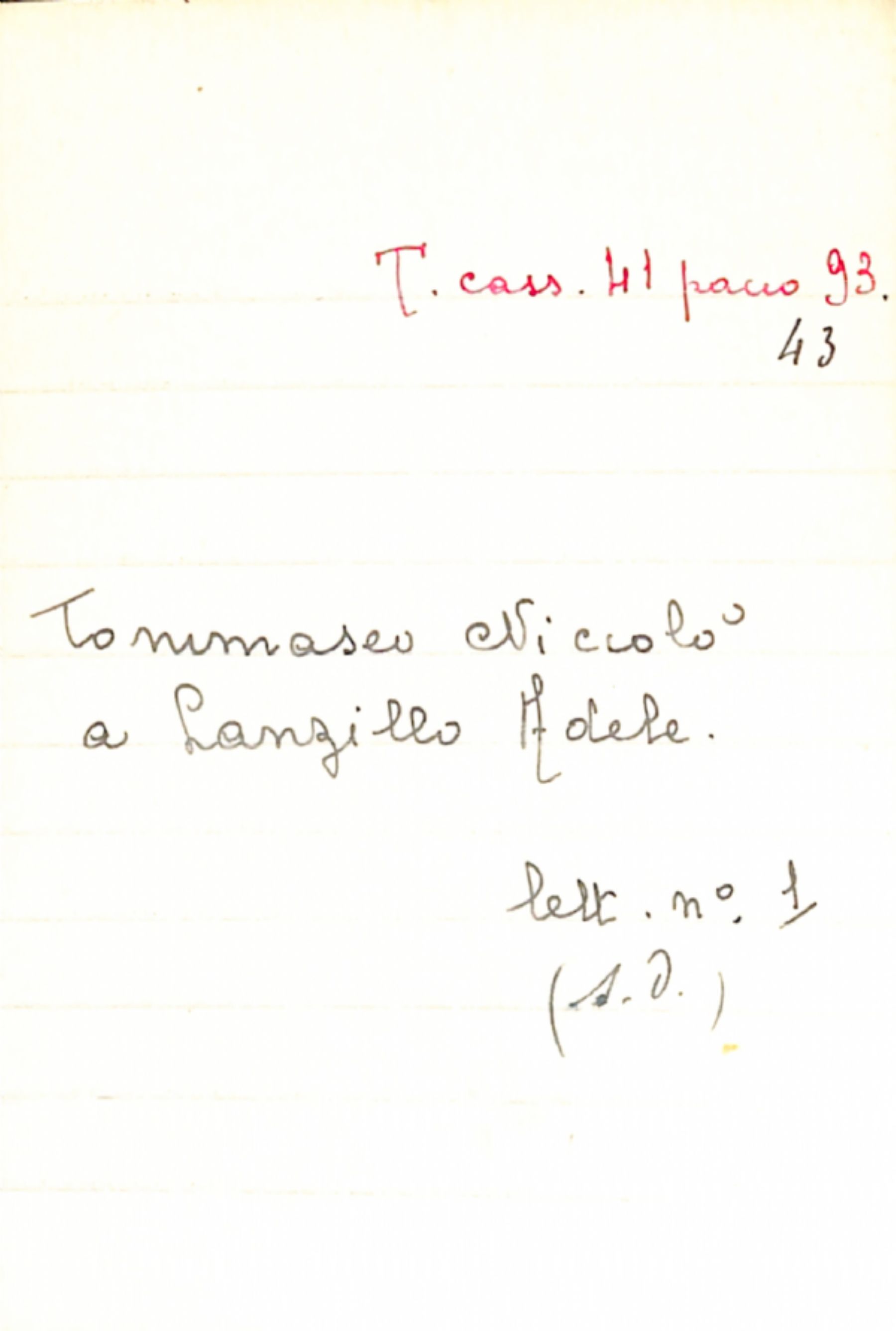 Fascicolo Tommaseo, Niccolò a Lanzillo, Adele