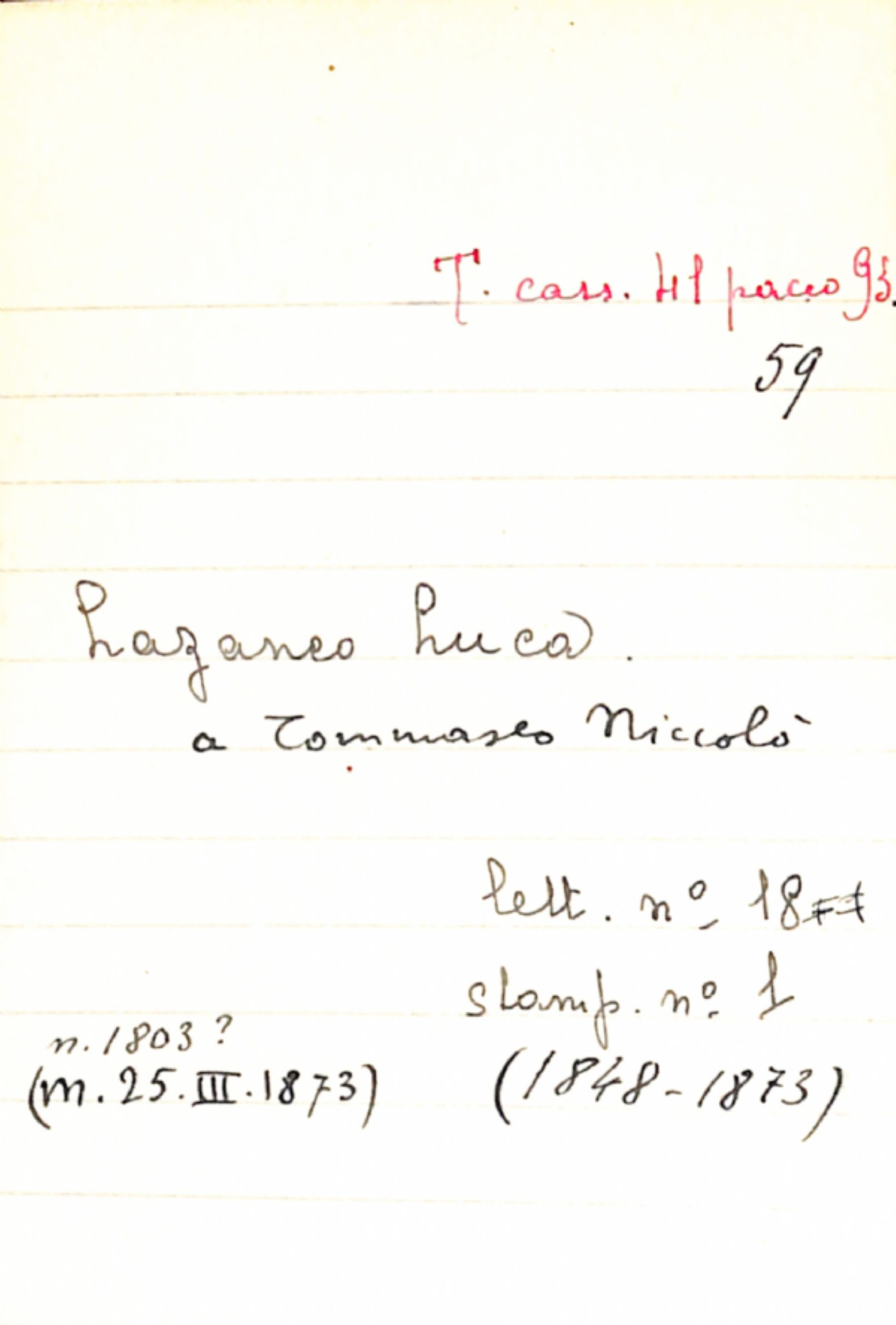 Fascicolo Lazanco, Luca a Tommaseo, Niccolò