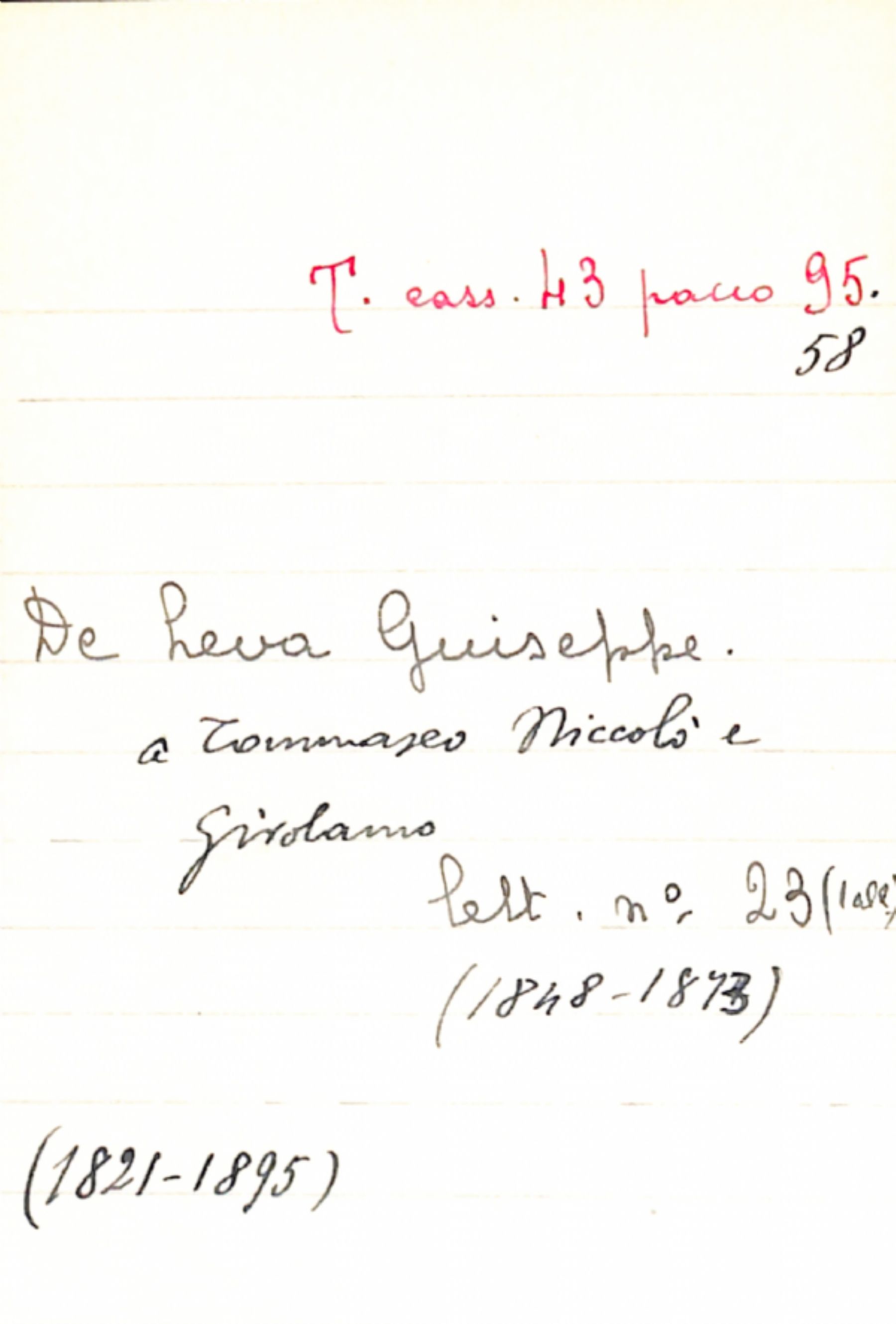 Fascicolo De Leva, Giuseppe a Tommaseo, Niccolò; Tommaseo, Girolamo