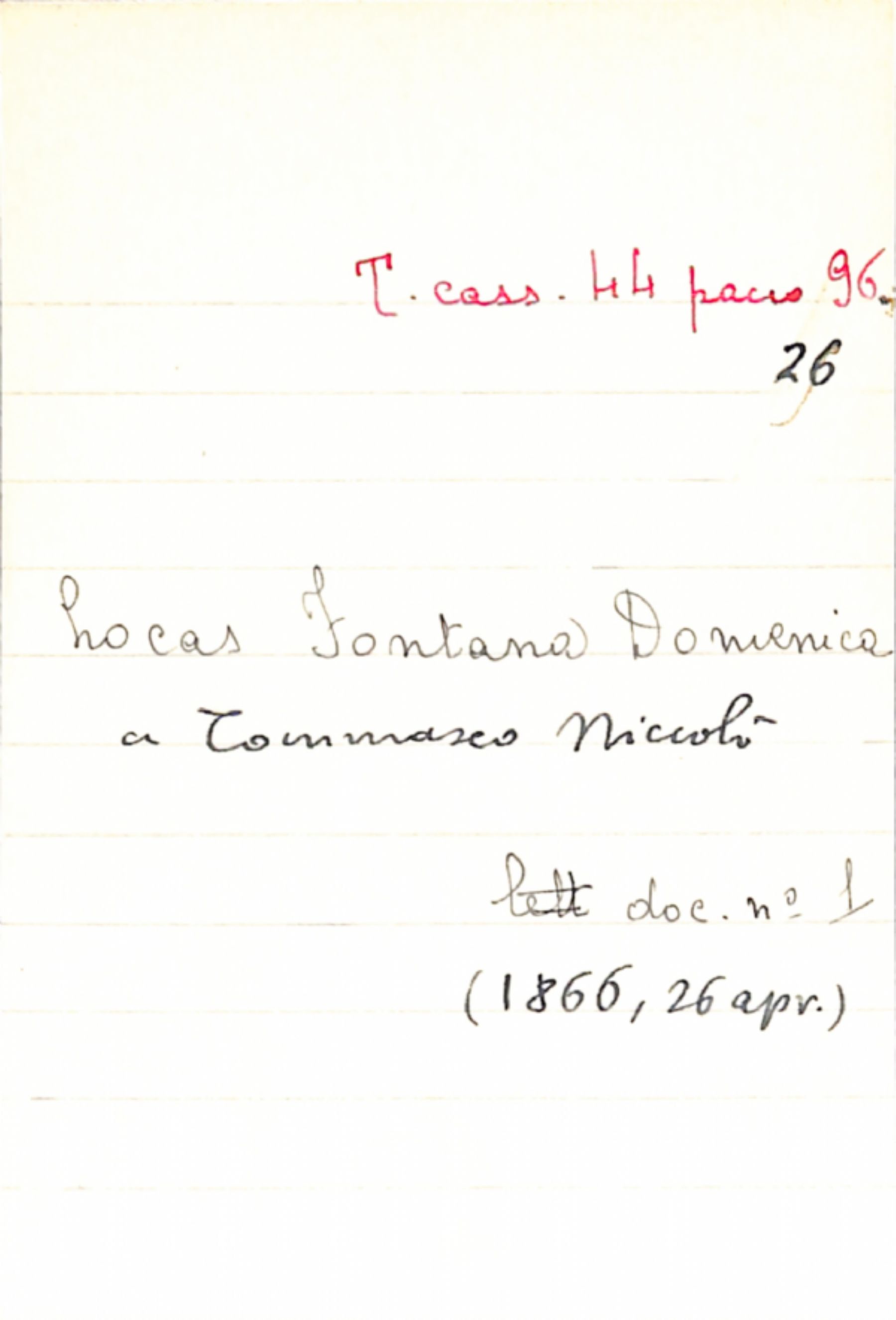 Fascicolo Locas Fontana, Domenica a Tommaseo, Niccolò