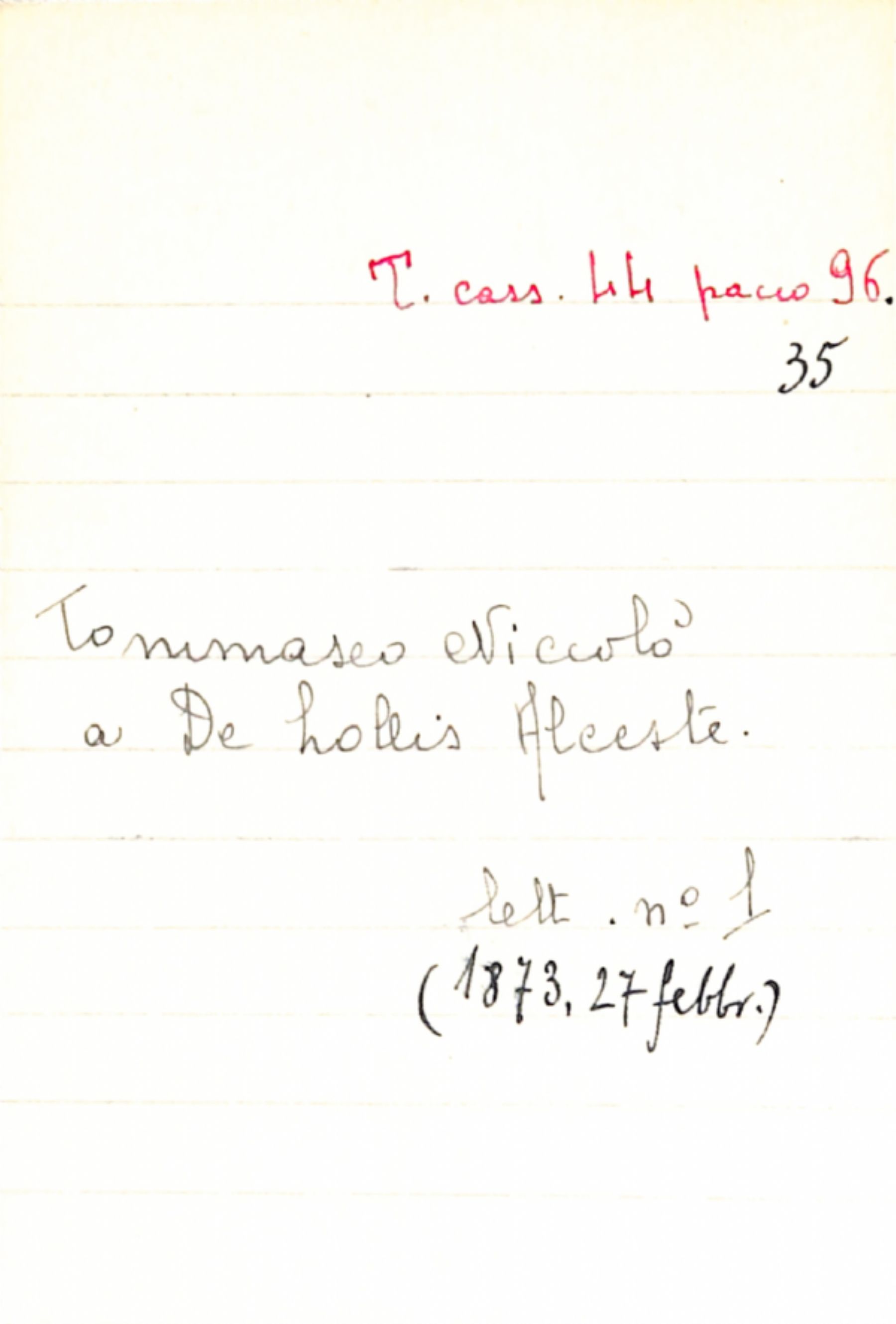 Fascicolo Tommaseo, Niccolò a De Lollis, Alceste