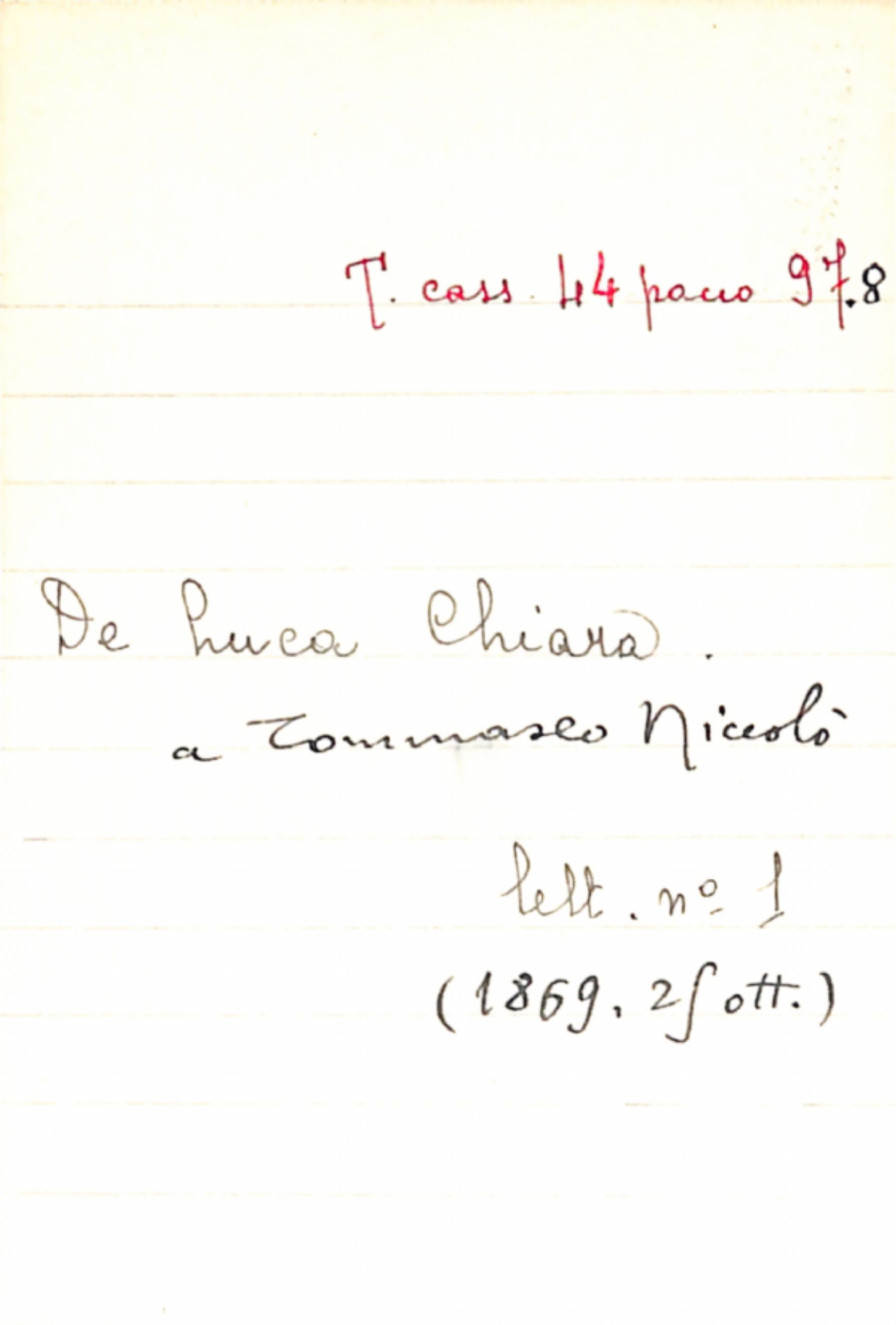 Fascicolo De Luca, Chiara a Tommaseo, Niccolò