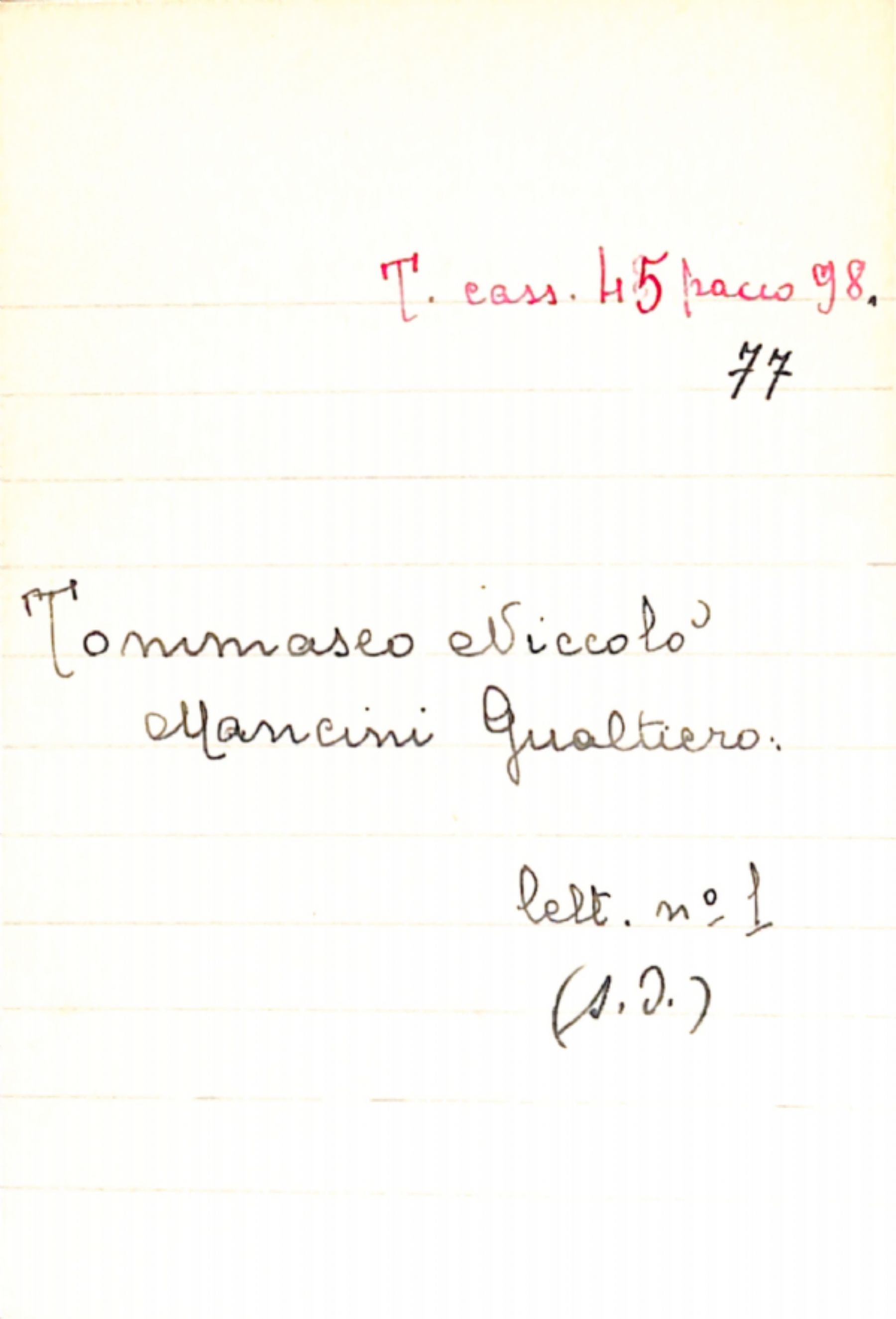 Fascicolo Tommaseo, Niccolò a Mancini, Gualtiero