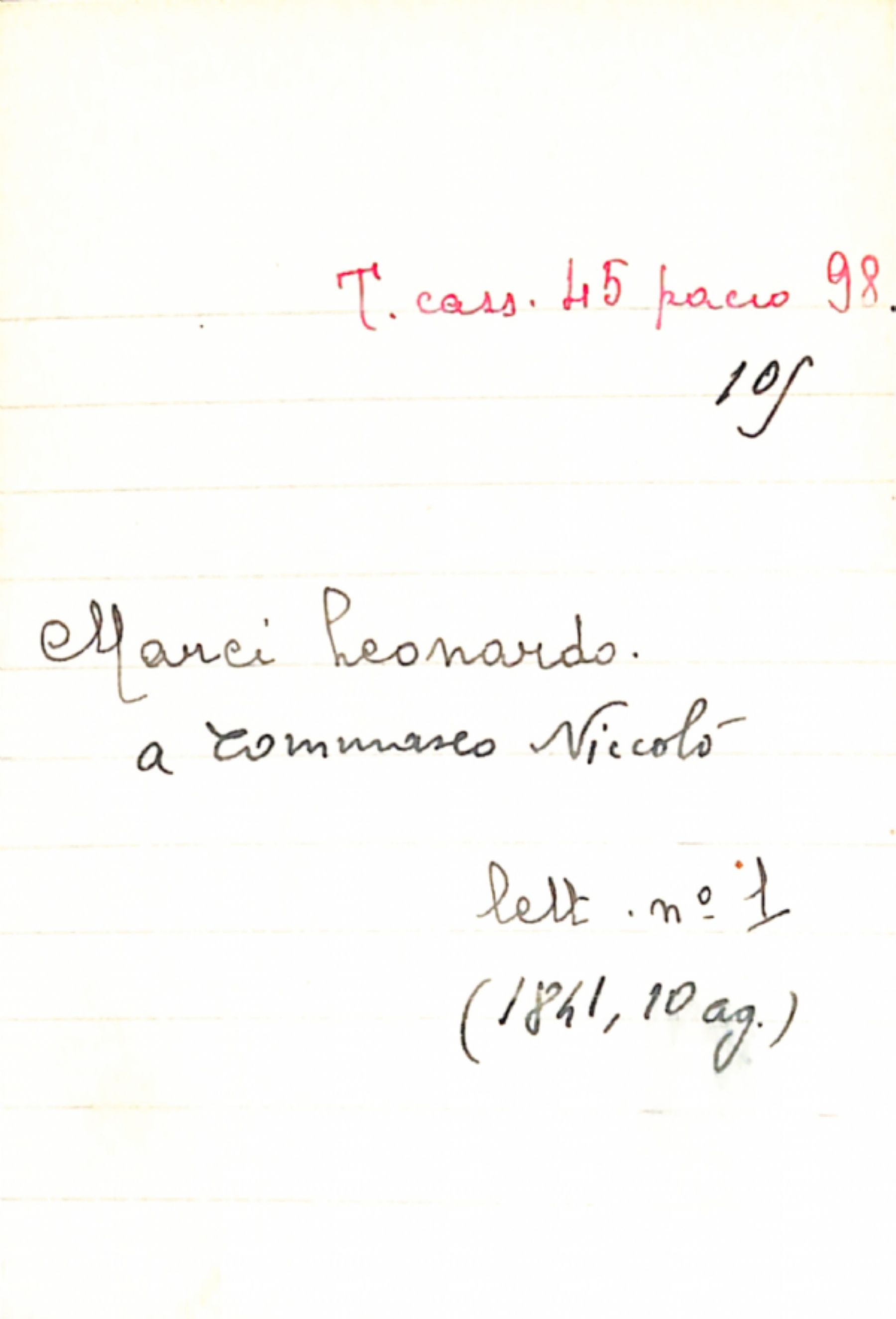 Fascicolo Marci, Leonardo a Tommaseo, Niccolò