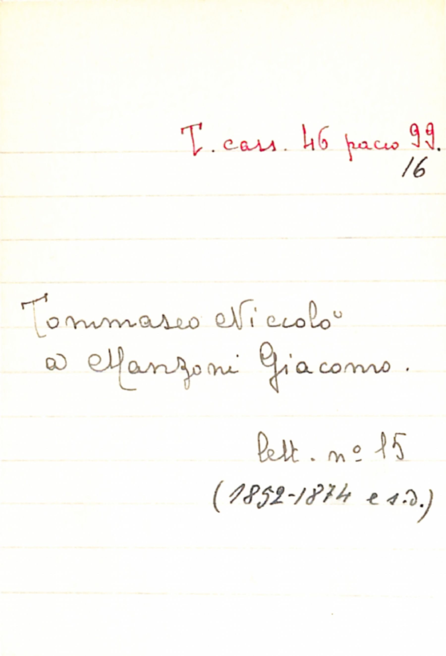 Fascicolo Tommaseo, Niccolò a Manzoni, Giacomo