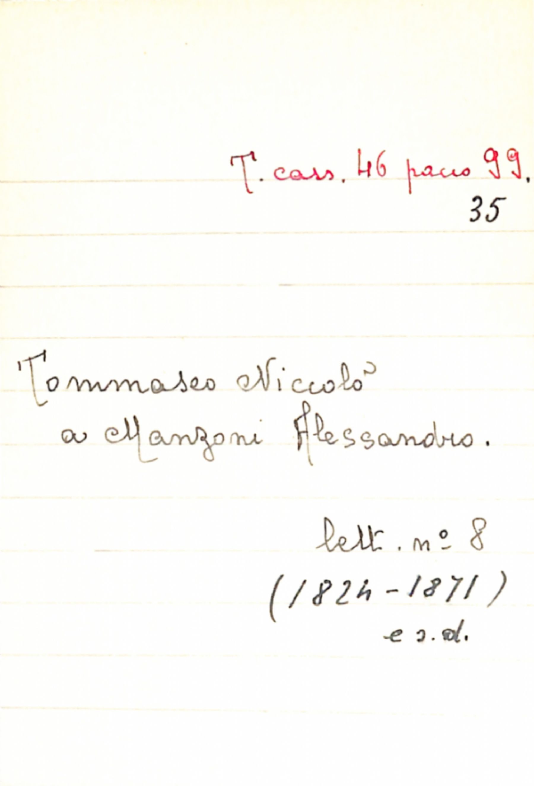 Fascicolo Tommaseo, Niccolò a Manzoni, Alessandro