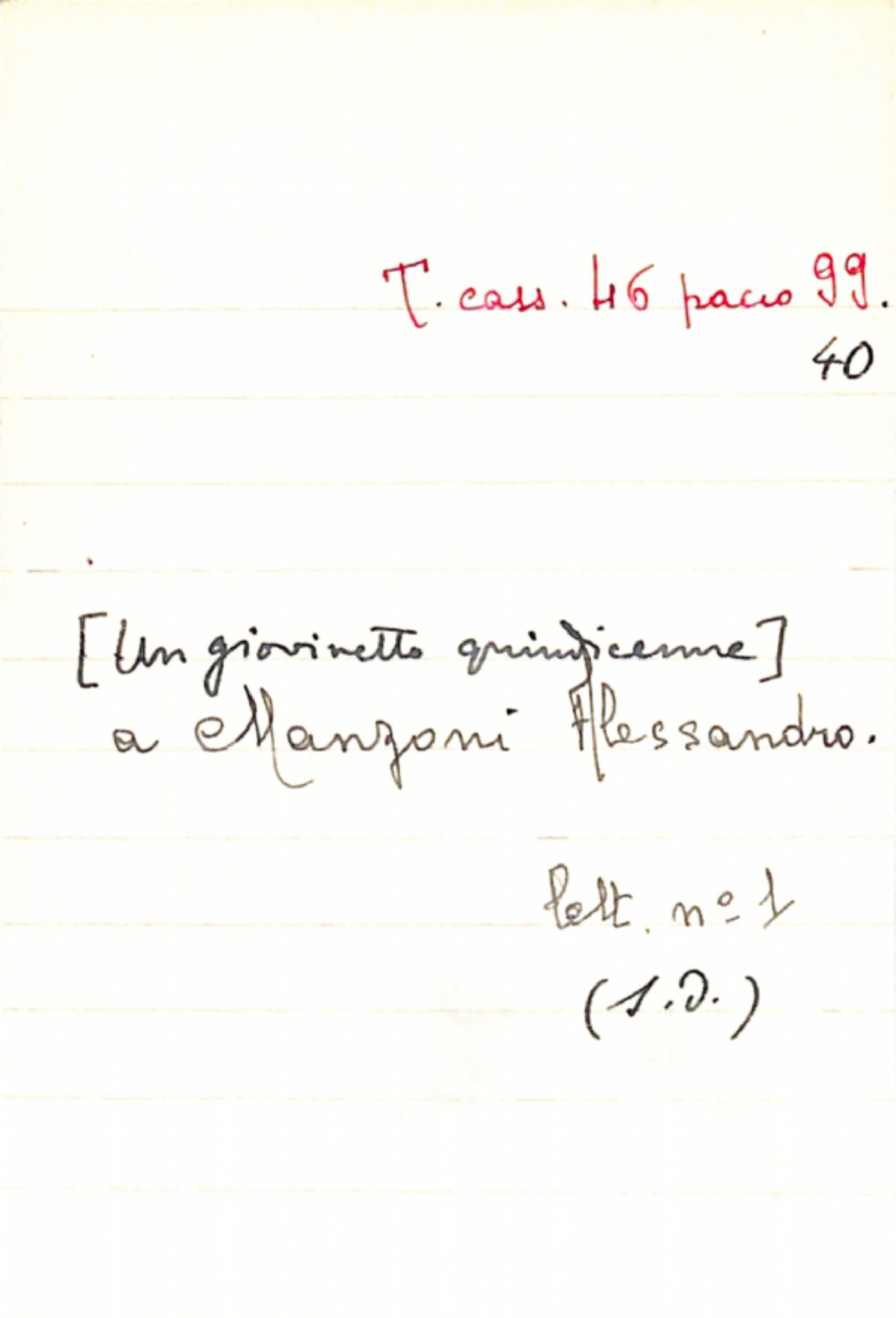Fascicolo [Un giovinetto quindicenne] a Manzoni, Alessandro
