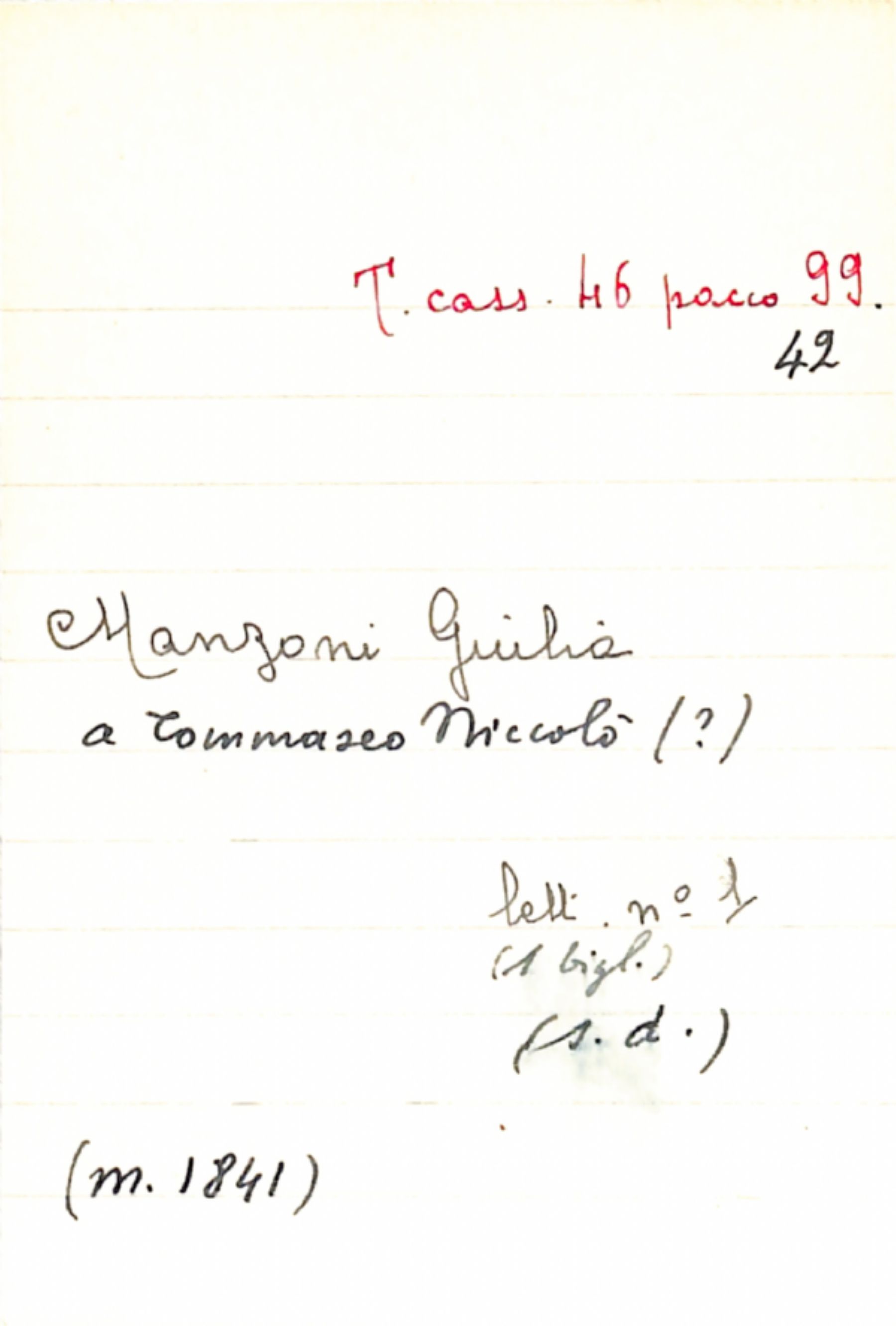 • Manzoni, Giulia a Tommaseo, Niccolò (?)