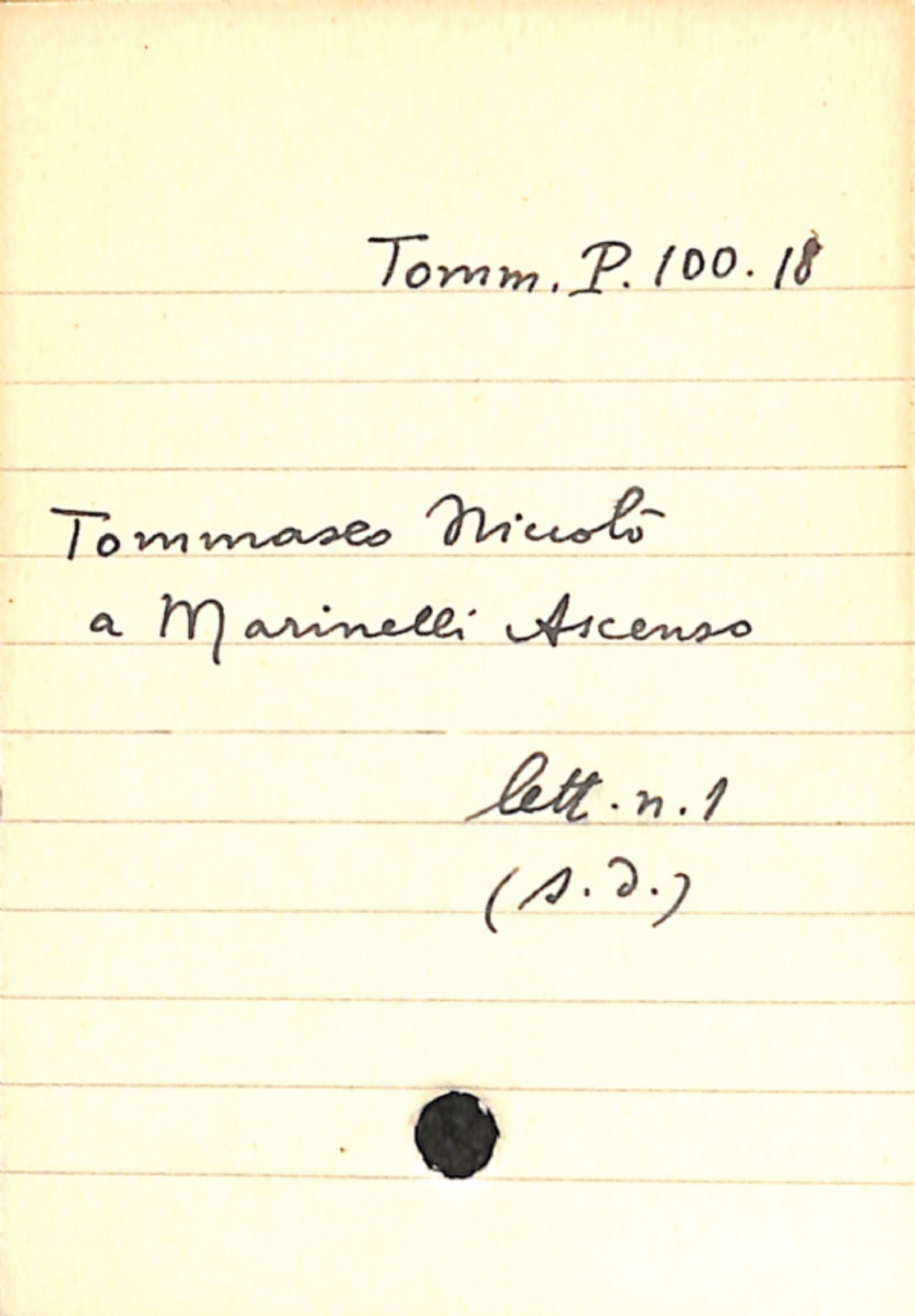 Fascicolo Tommaseo, Niccolò a Marinelli, Ascenso