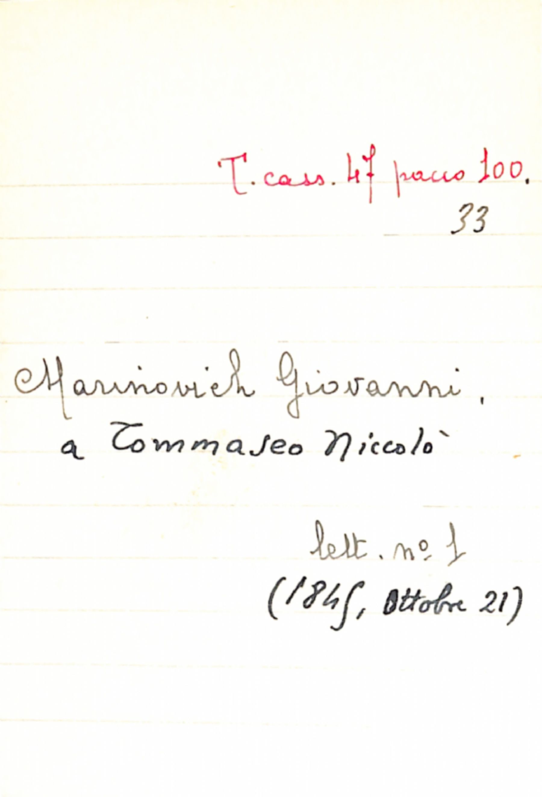Fascicolo Marinovich, Giovanni a Tommaseo, Niccolò