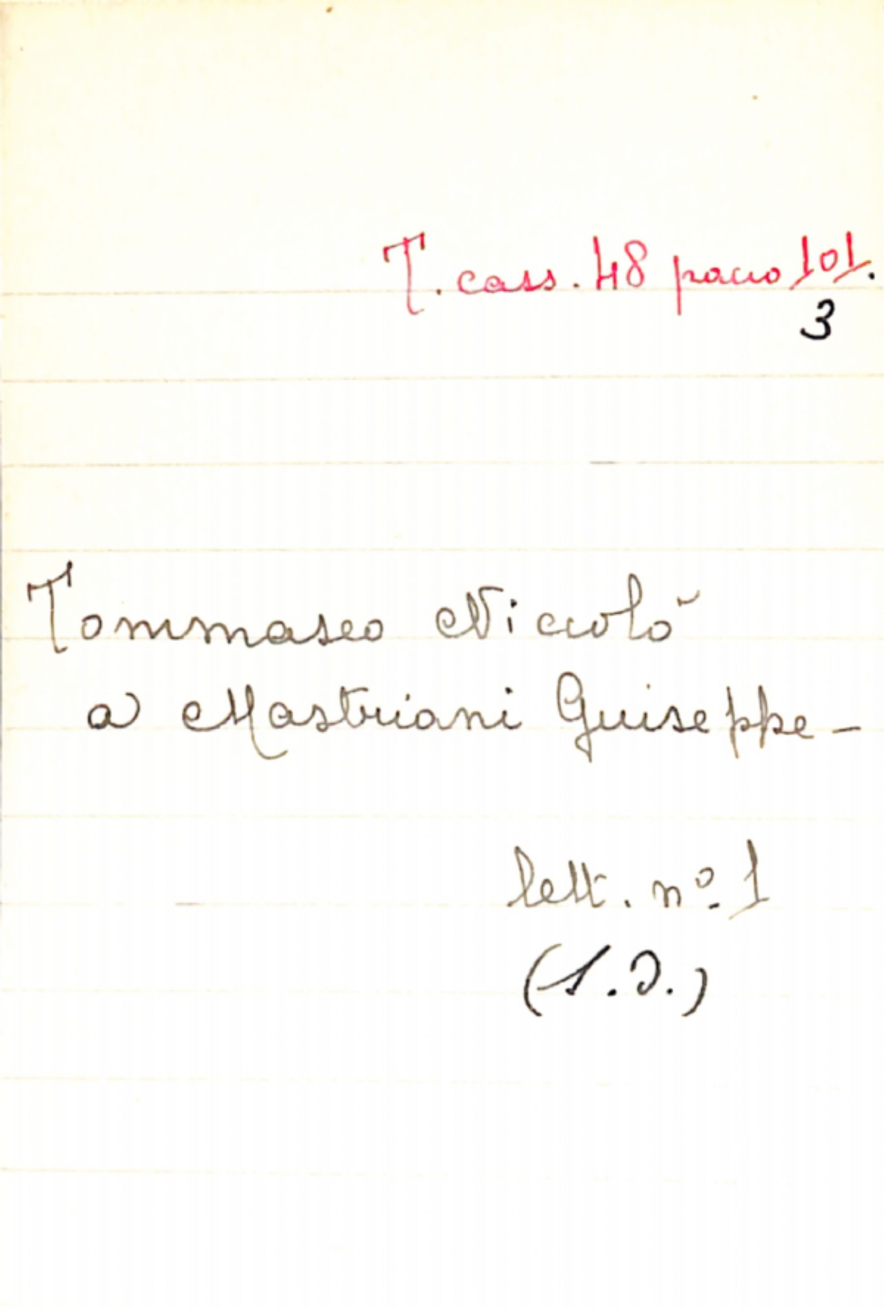 Fascicolo Tommaseo, Niccolò a Mastriani, Giuseppe