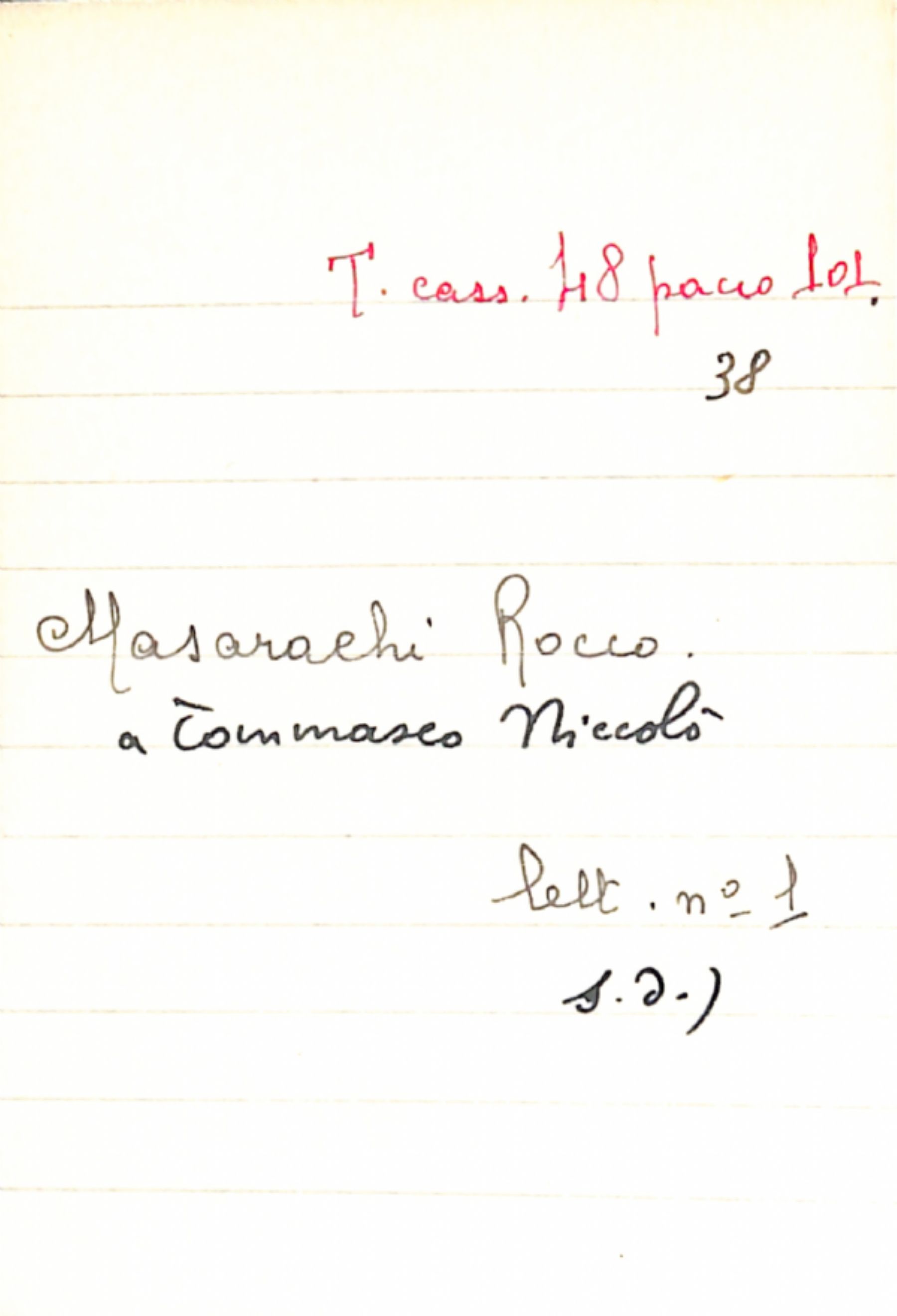 Fascicolo Masarachi, Rocco a Tommaseo, Niccolò