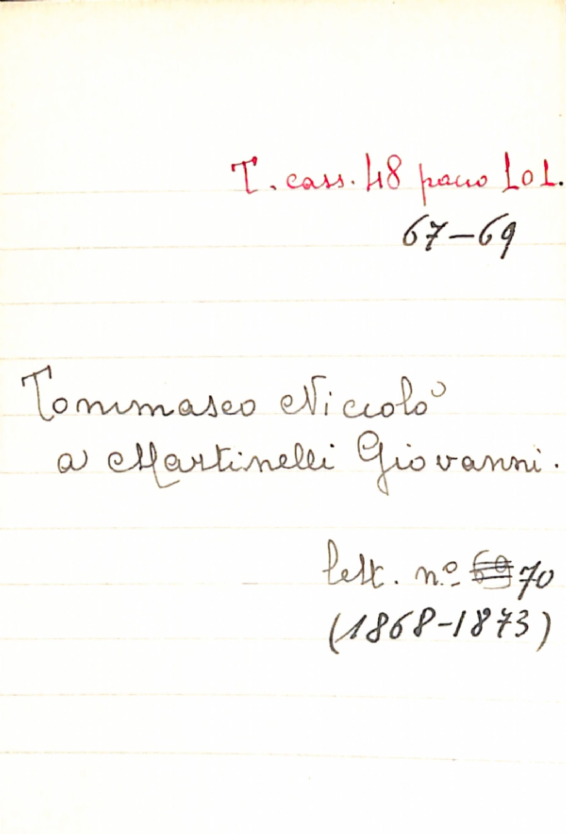 Fascicolo Tommaseo, Niccolò a Martinelli, Giovanni