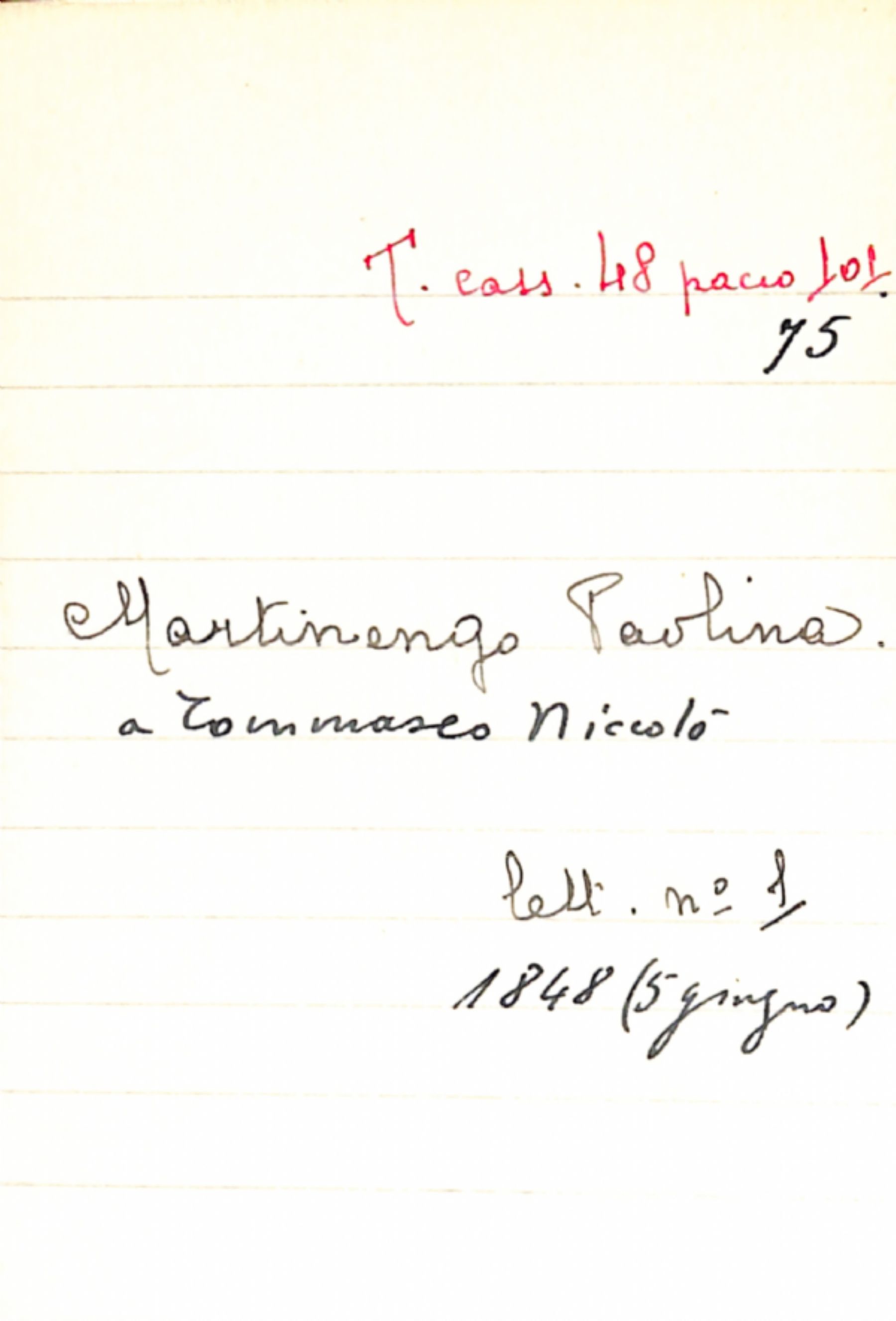 Fascicolo Martinengo, Paolina a Tommaseo, Niccolò