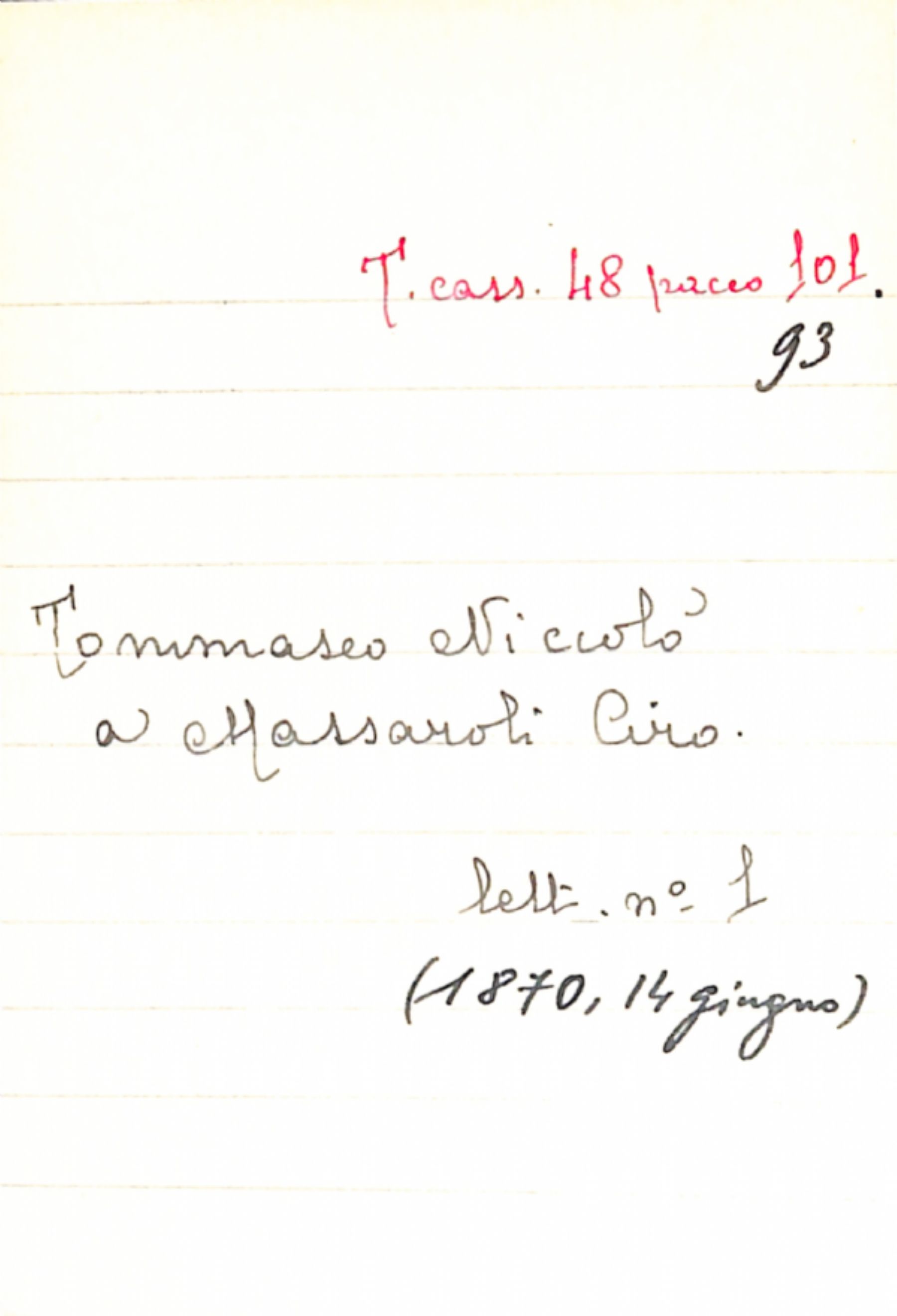 Fascicolo Tommaseo, Niccolò a Massaroli, Ciro