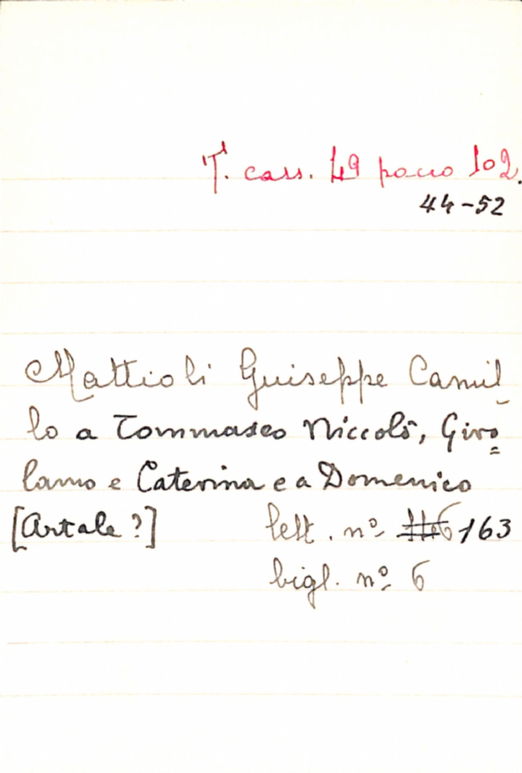 • Mattioli, Giuseppe a Tommaseo, Niccolò; Tommaseo, Girolamo; Tommaseo, Caterina; [Artale?], Domenico