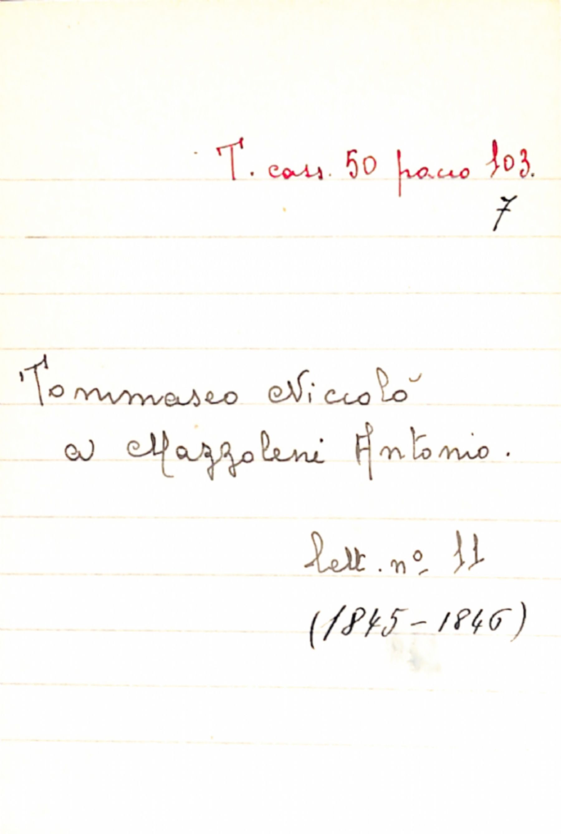 Fascicolo Tommaseo, Niccolò a Mazzoleni, Antonio