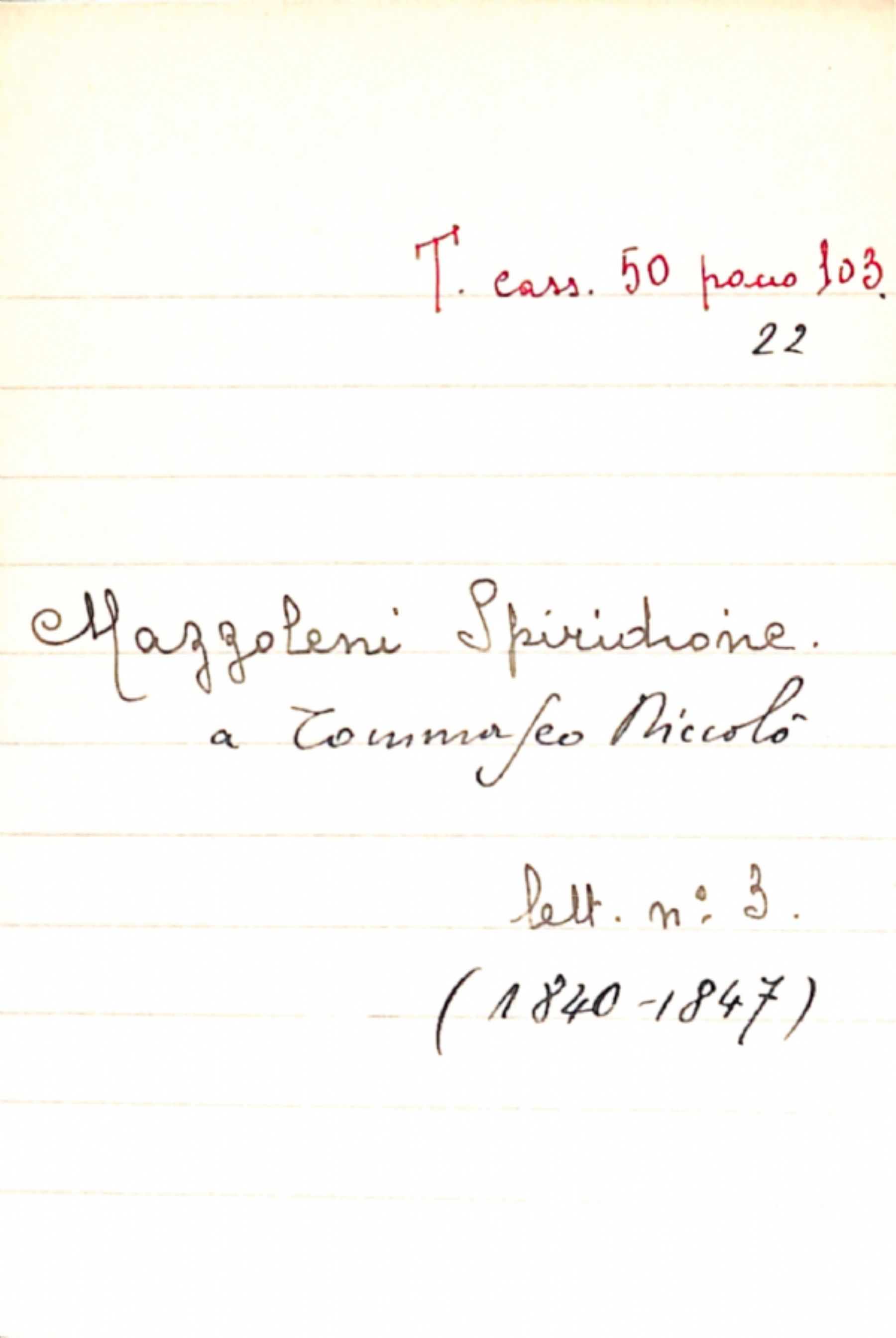 Fascicolo Mazzoleni, Spiridione a Tommaseo, Niccolò