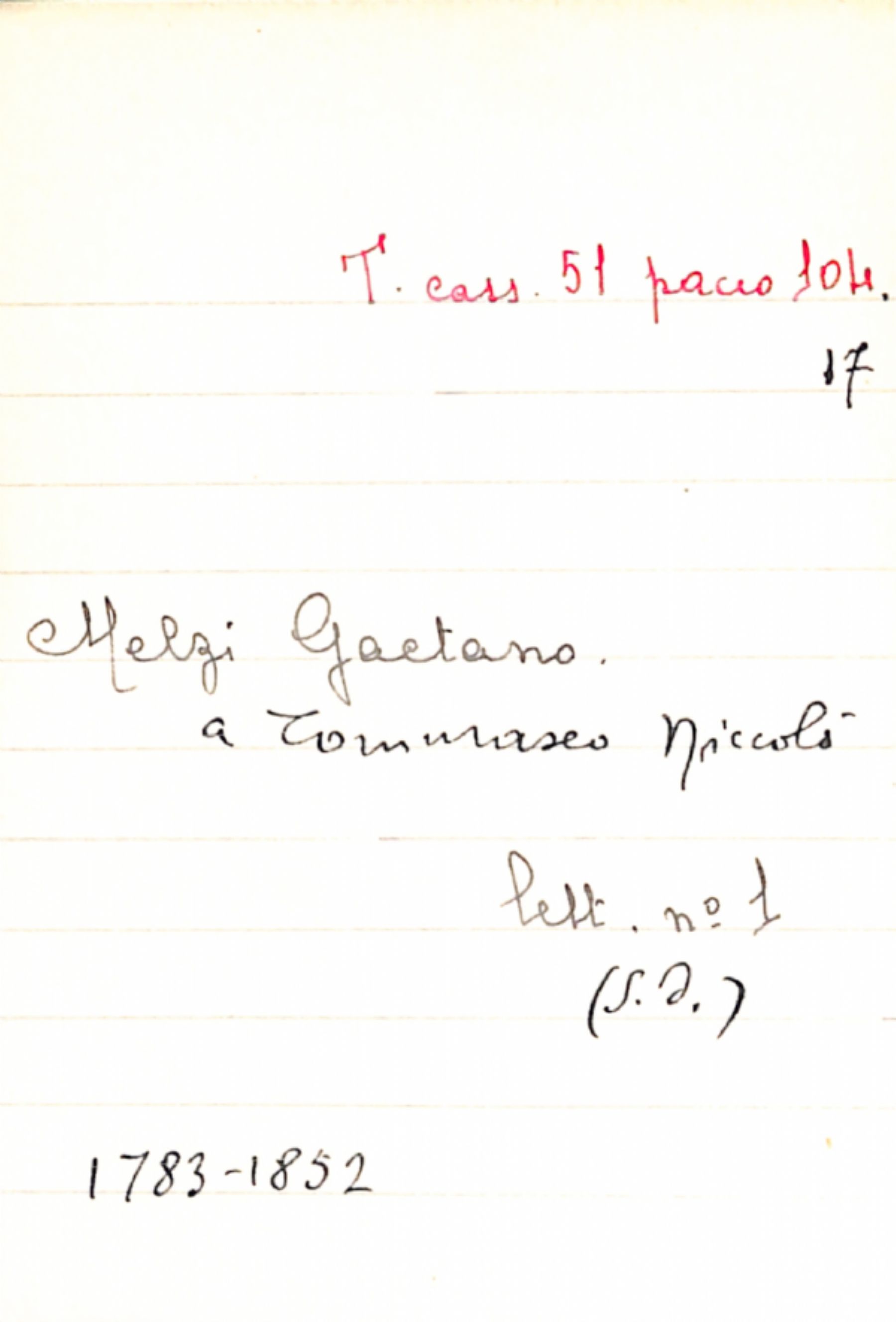 Fascicolo Melzi, Gaetano a Tommaseo, Niccolò