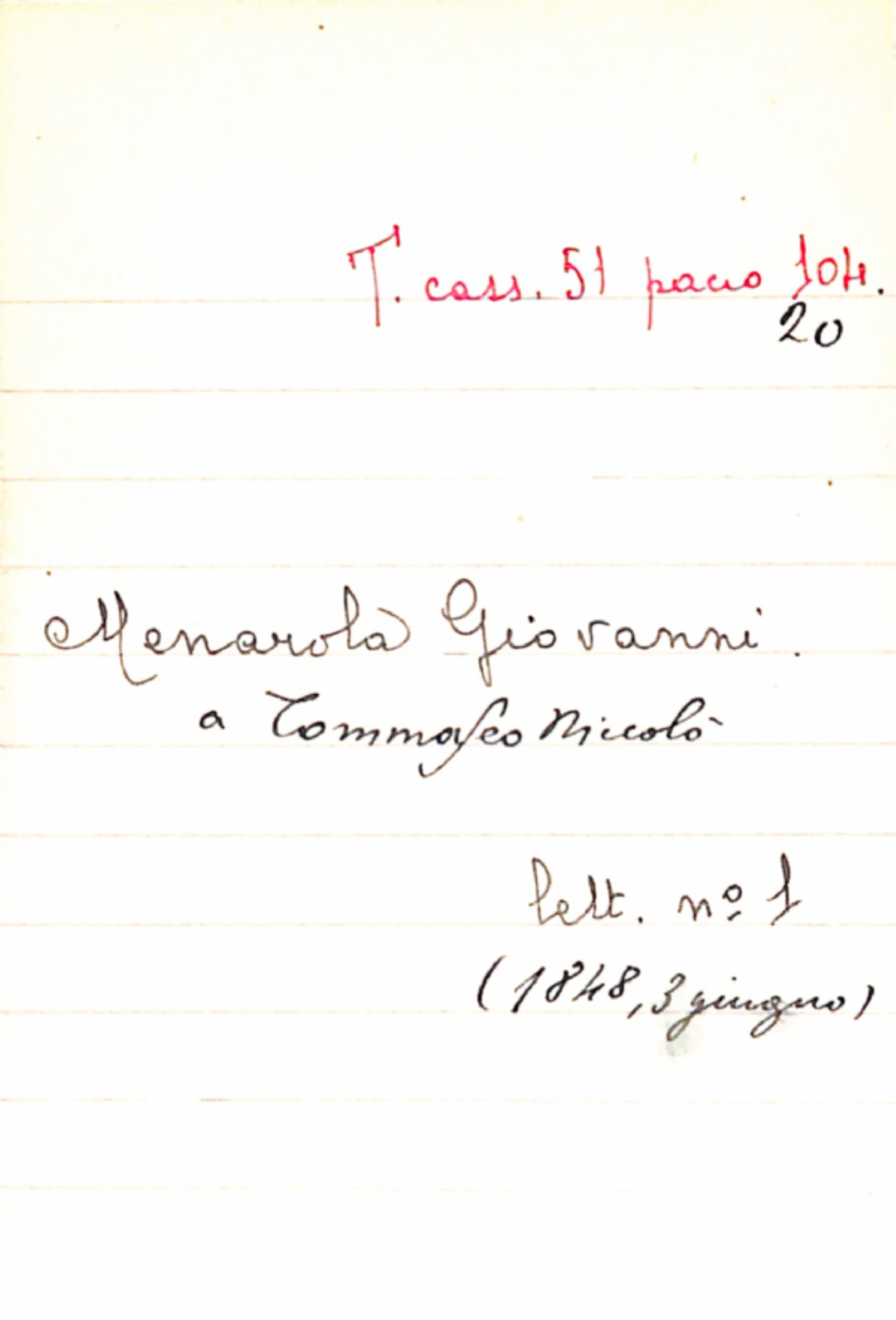 Fascicolo Menarola, Giovanni a Tommaseo, Niccolò