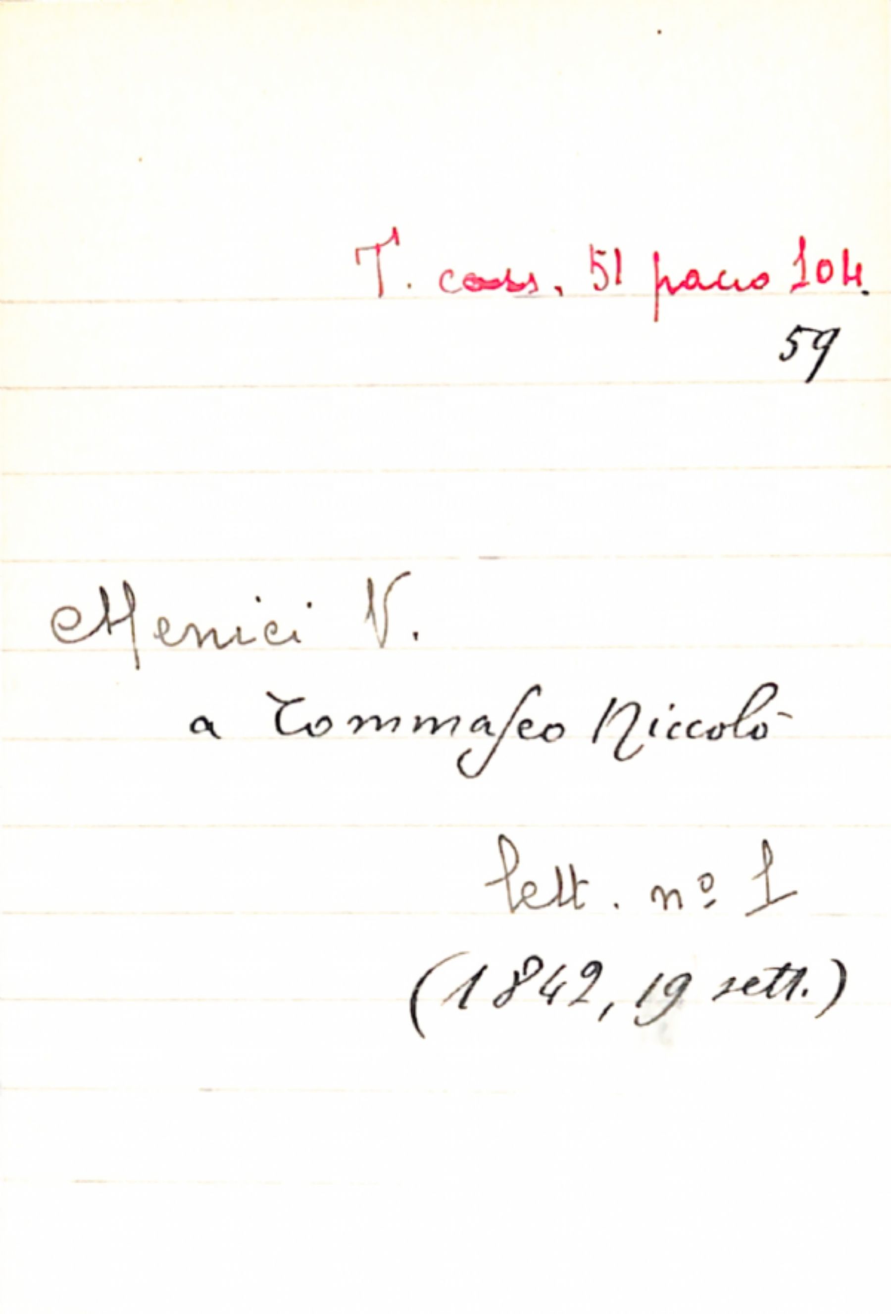 Fascicolo Menici, V. a Tommaseo, Niccolò
