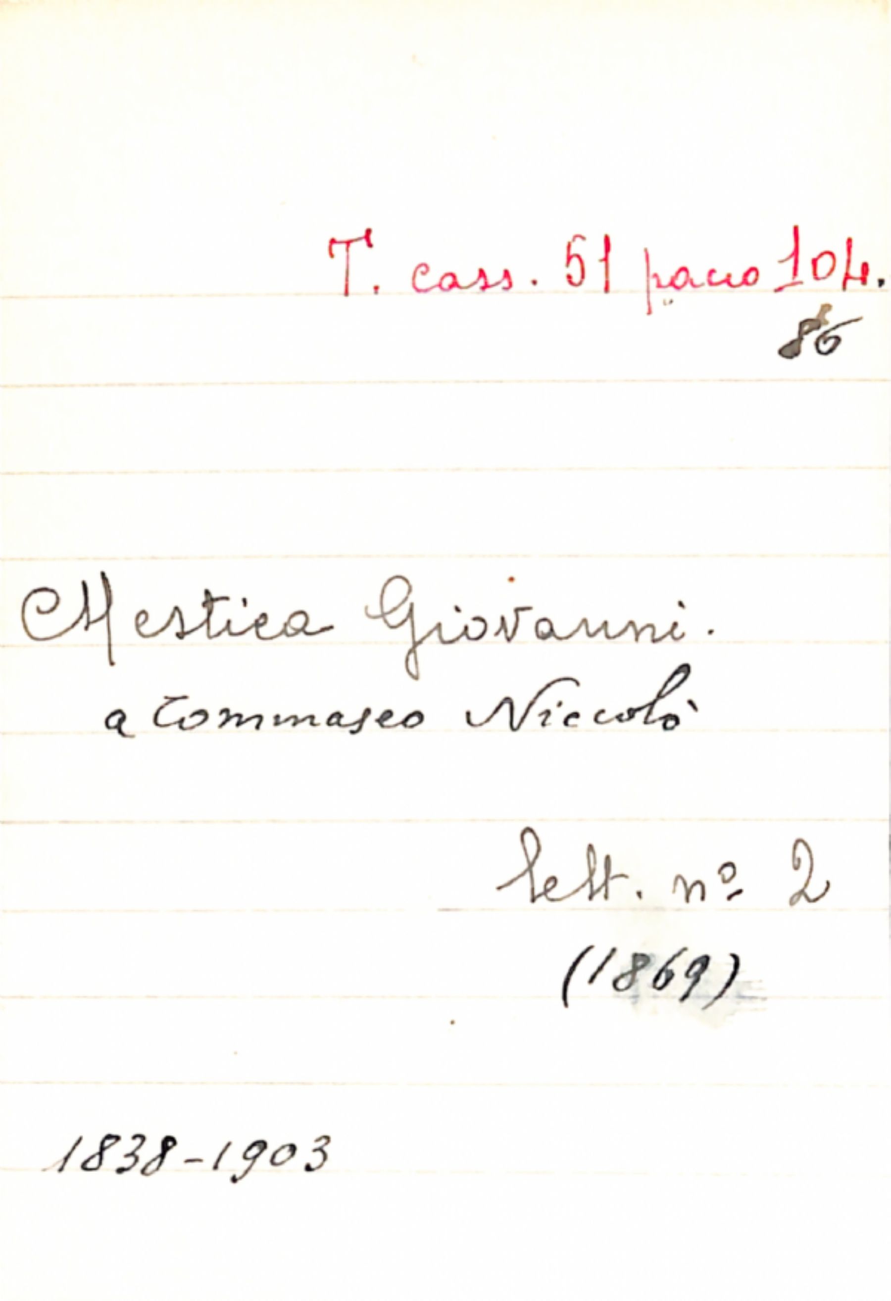 Fascicolo Mestica, Giovanni a Tommaseo, Niccolò