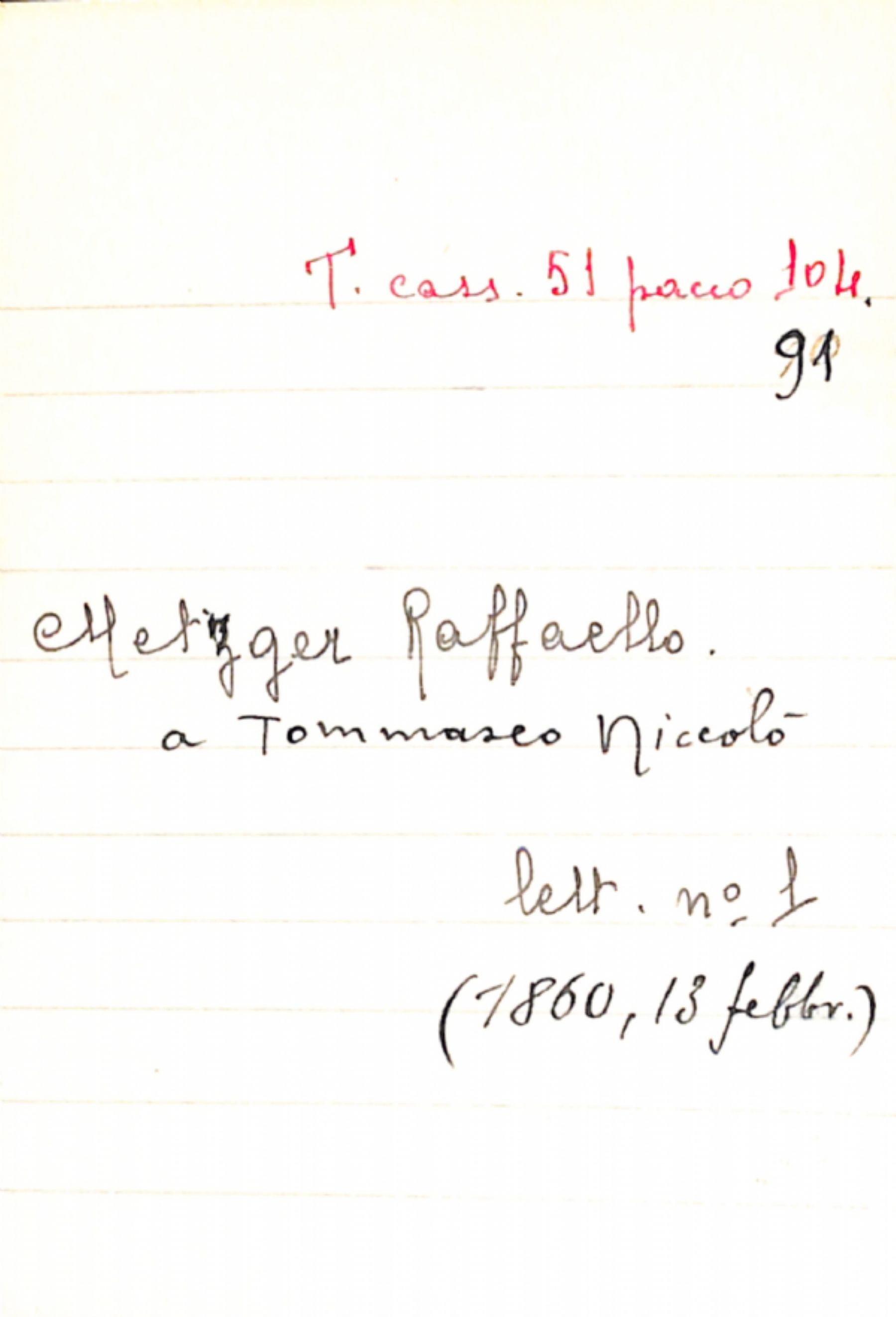 Fascicolo Metzger, Raffaello a Tommaseo, Niccolò