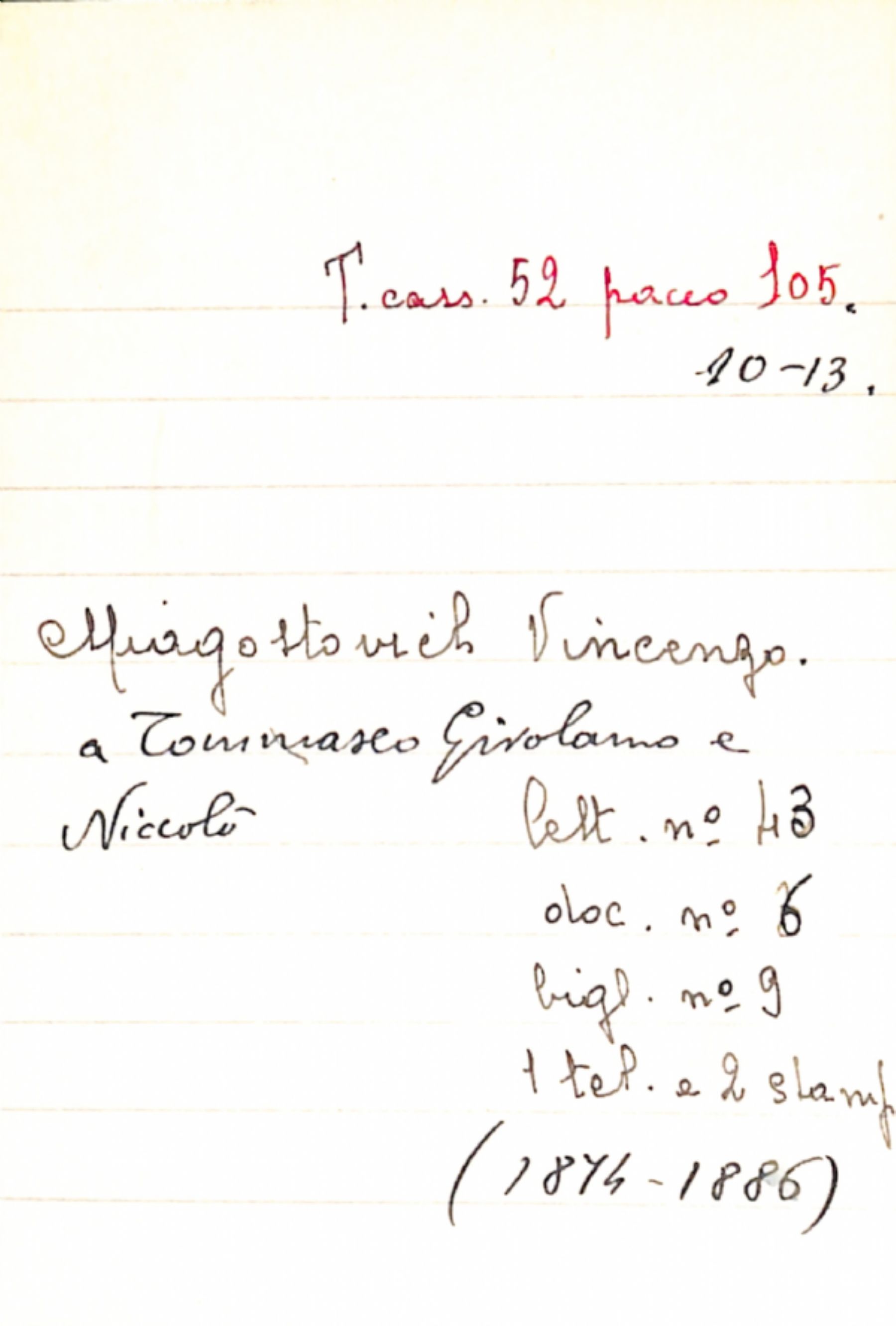 Fascicolo Miagostovich, Vincenzo a Tommaseo, Girolamo; Tommaseo, Niccolò