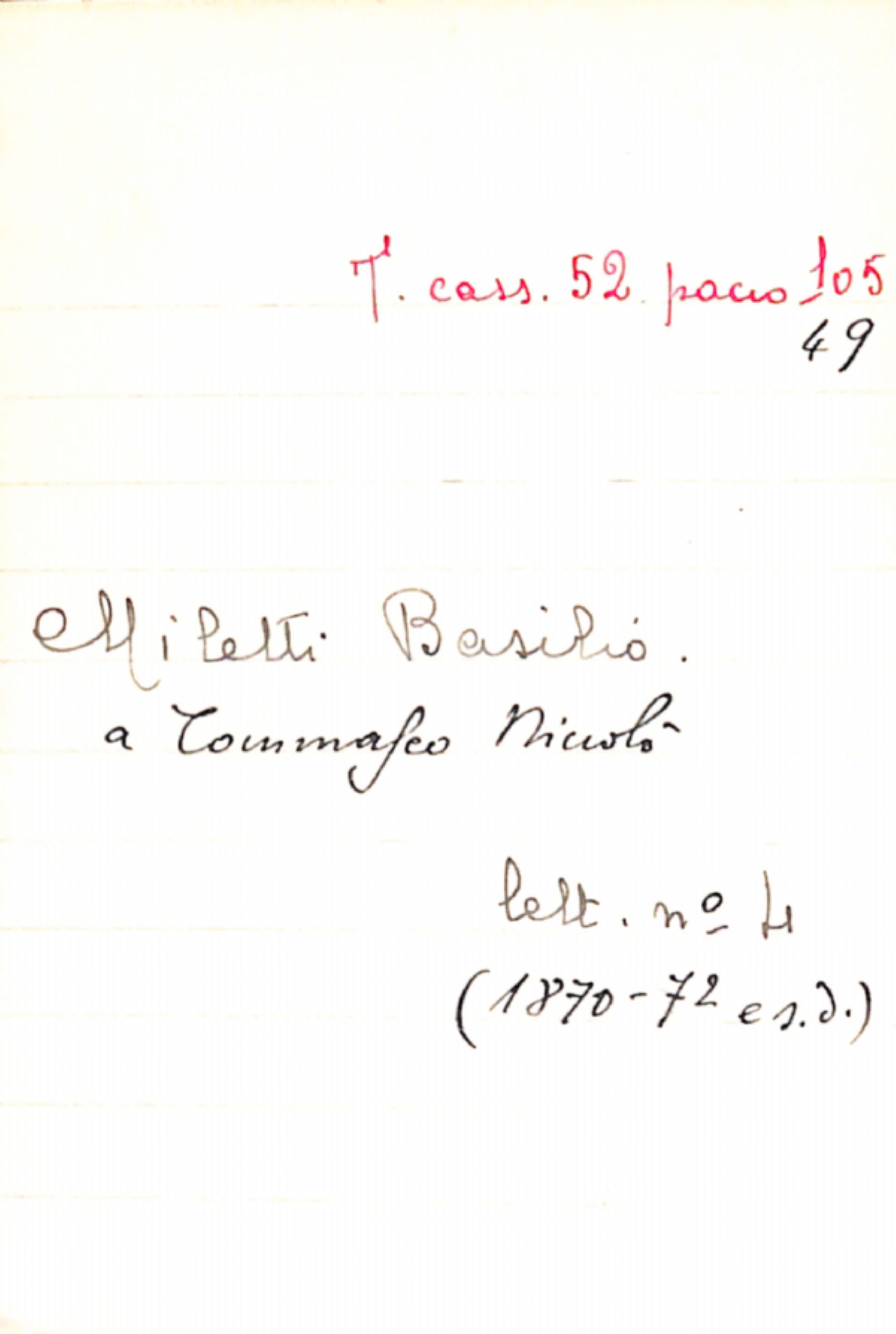 Fascicolo Miletti, Basilio a Tommaseo, Niccolò