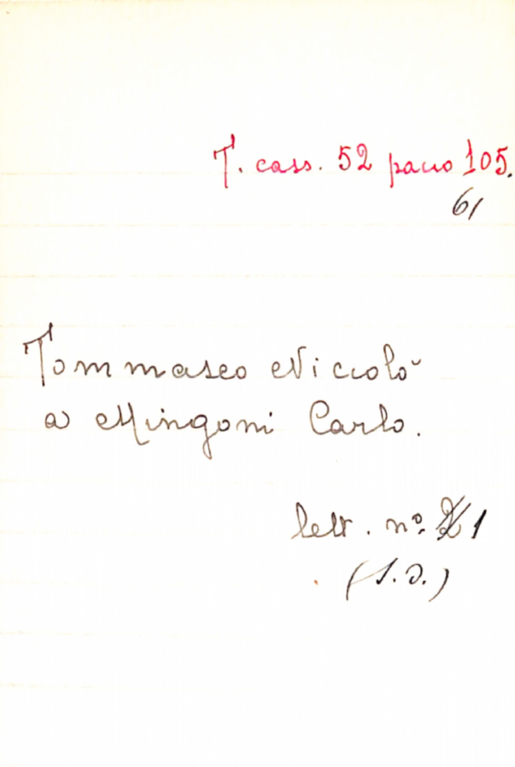 Fascicolo Tommaseo, Niccolò a Mingoni, Carlo