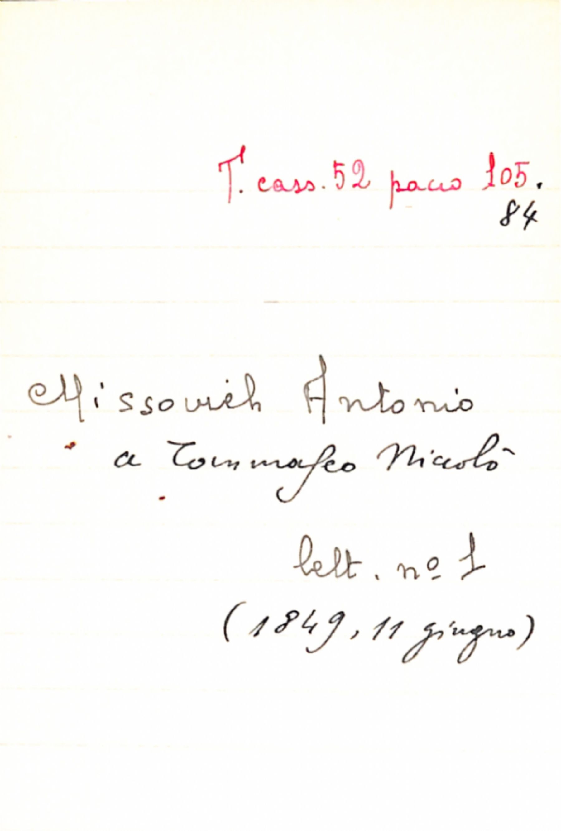 Fascicolo Missovich, Antonio a Tommaseo, Niccolò