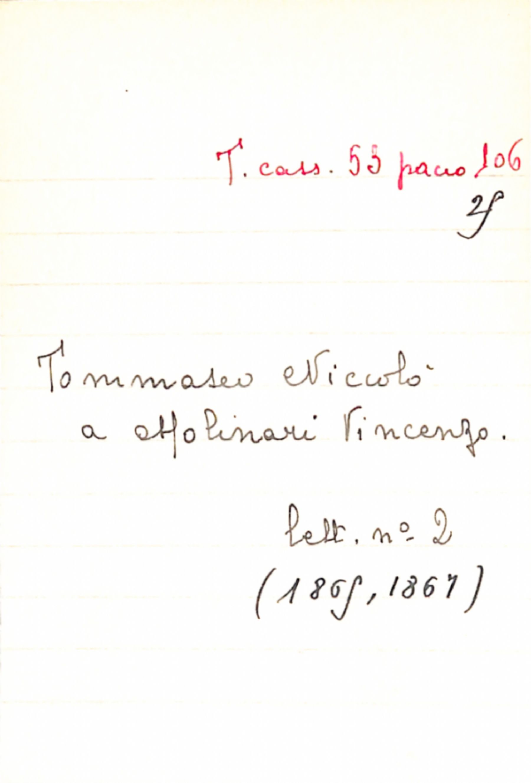Fascicolo Tommaseo, Niccolò a Molinari, Vincenzo