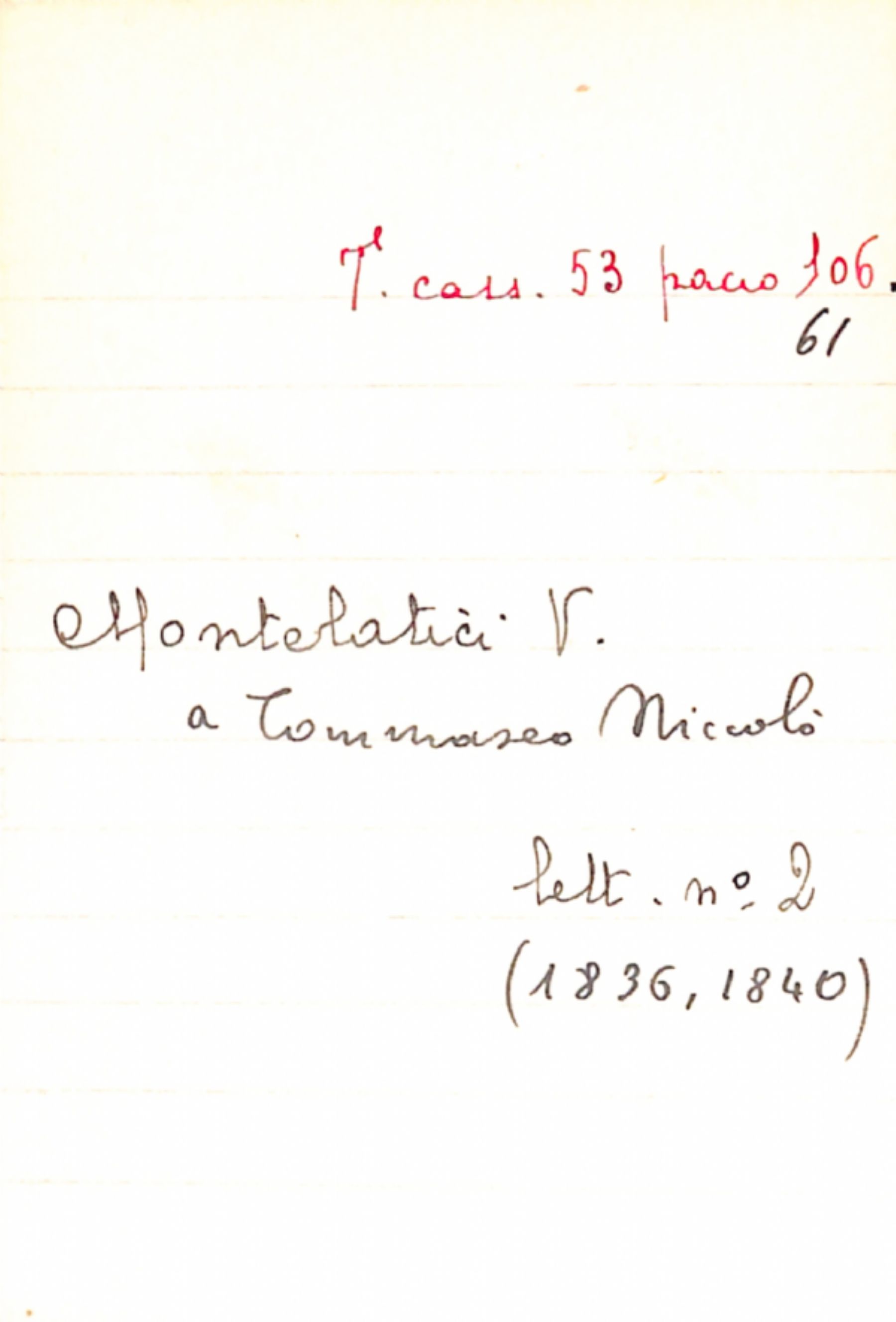 Fascicolo Montelatici, V. a Tommaseo, Niccolò