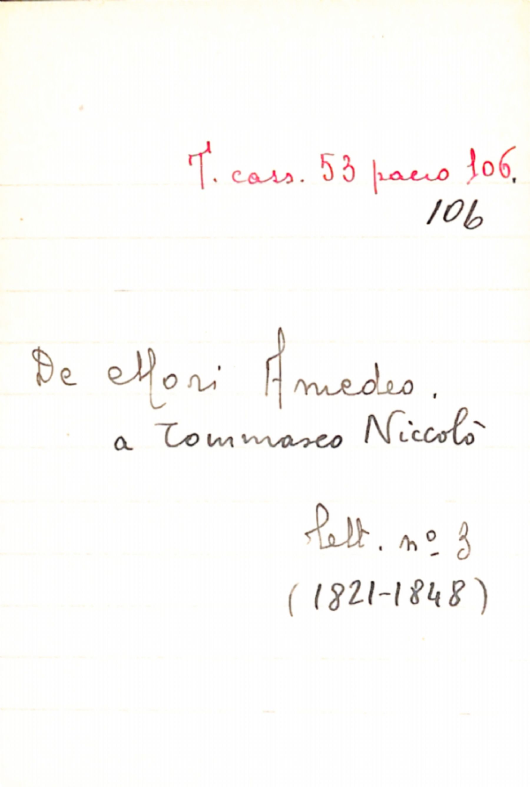Fascicolo De Mori, Amedeo a Tommaseo, Niccolò