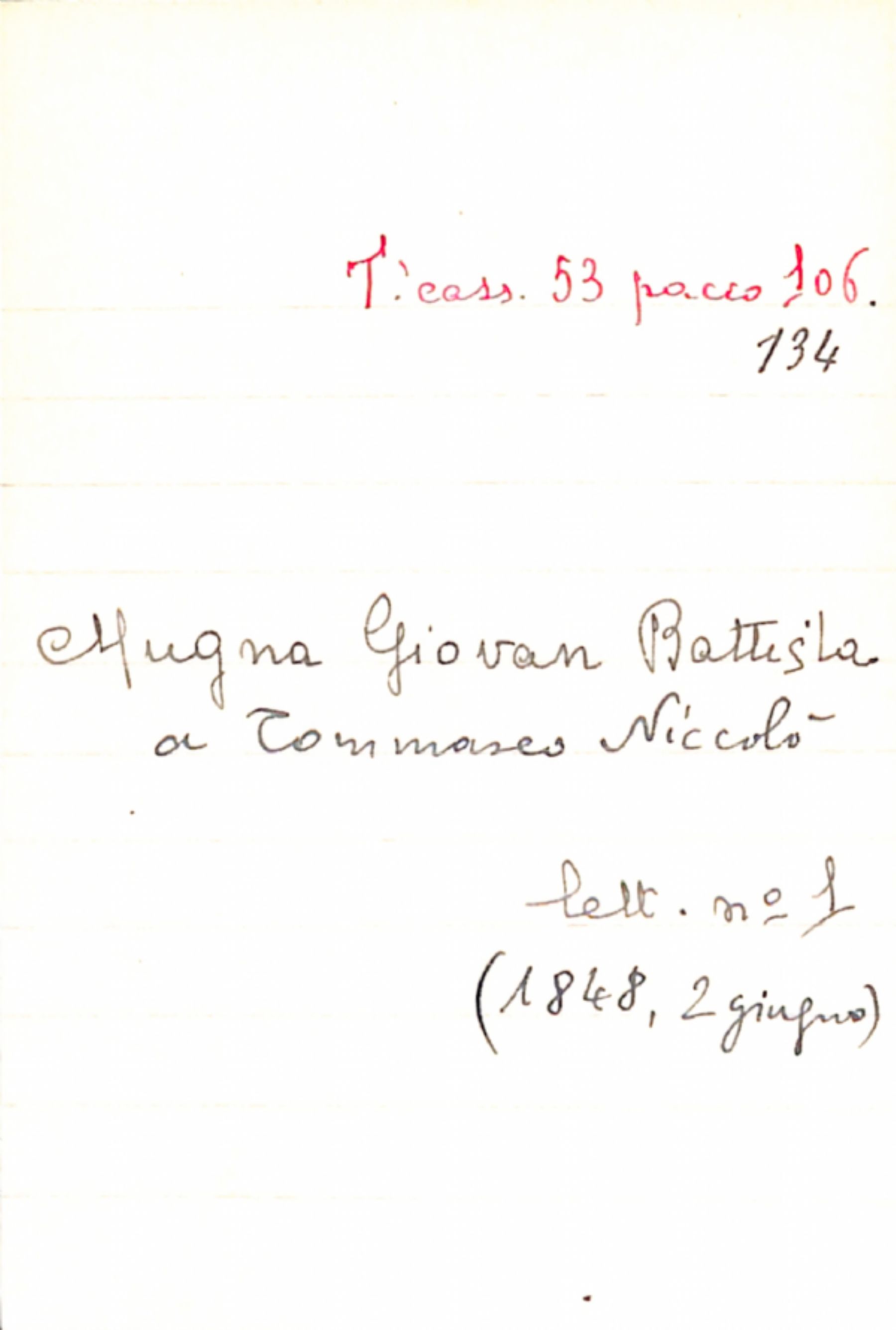 Fascicolo Mugna, Giovan Battista a Tommaseo, Niccolò