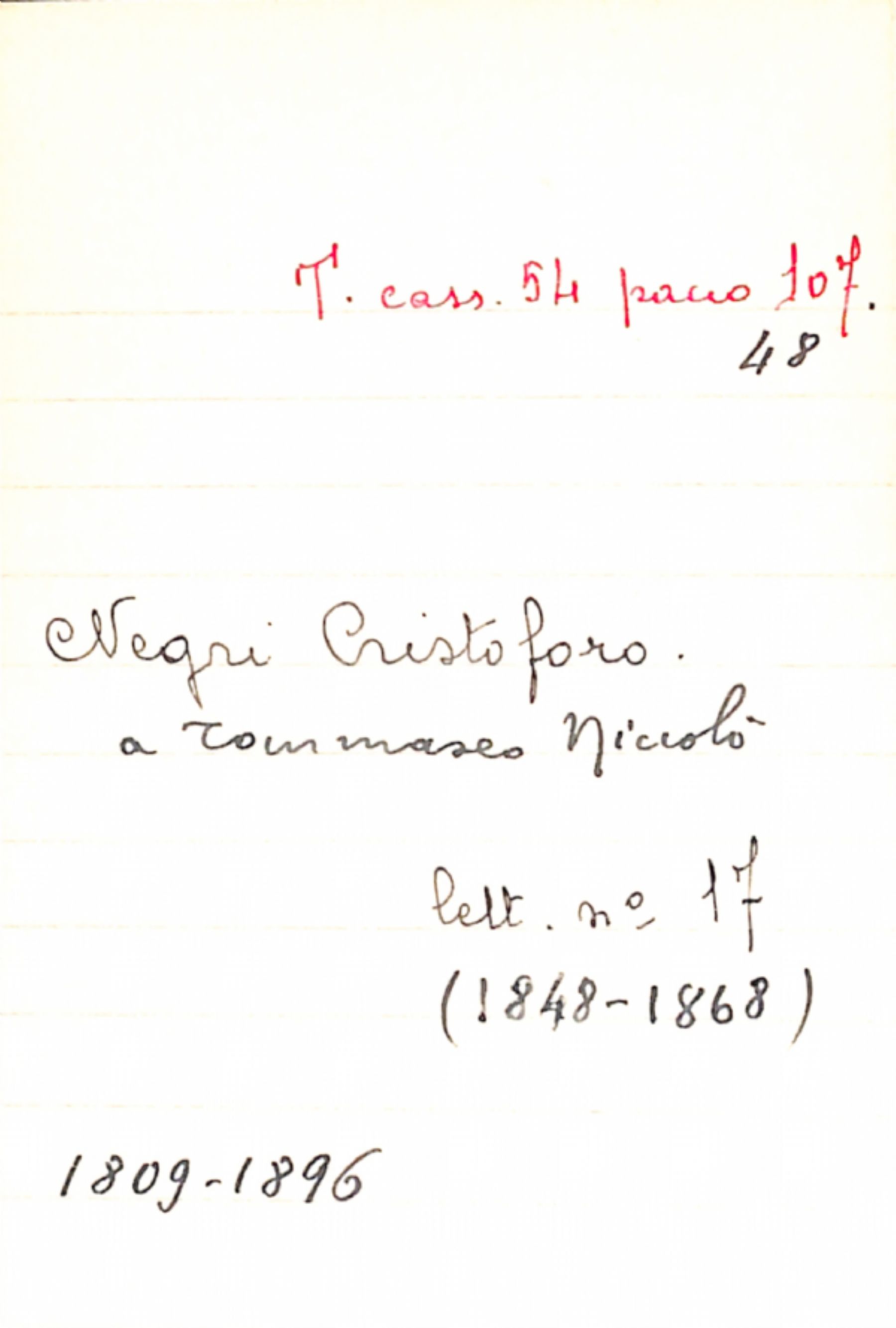 Fascicolo Negri, Cristoforo a Tommaseo, Niccolò