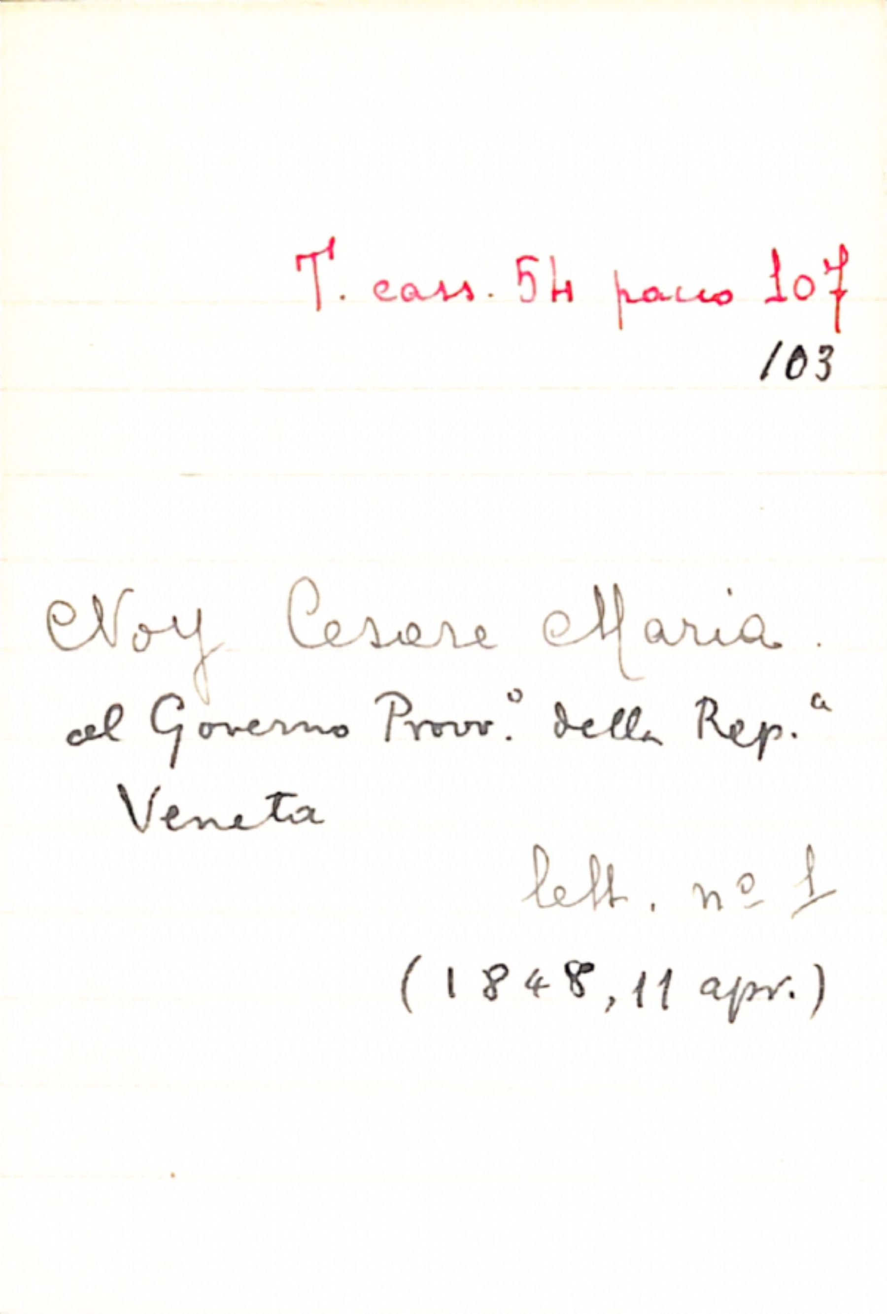 Fascicolo Noy, Cesare Maria a Governo Provvisorio della Repubblica Veneta