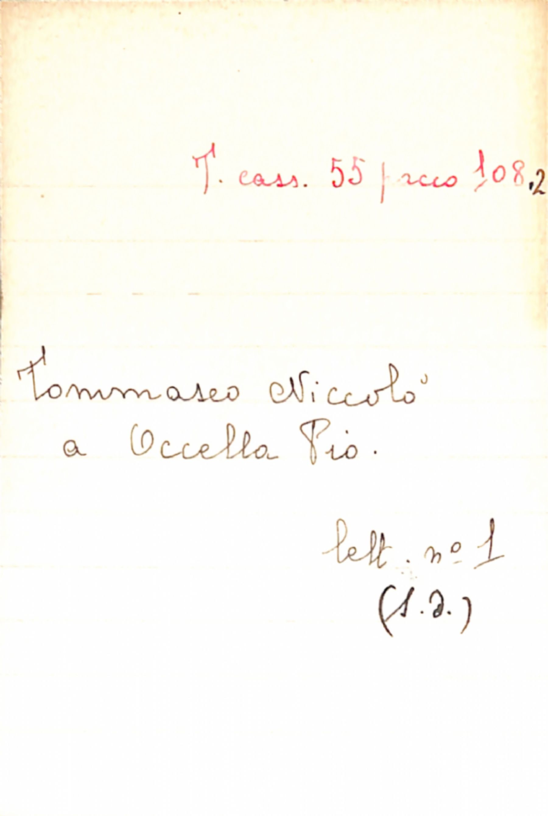 Fascicolo Tommaseo, Niccolò a Occella, Pio