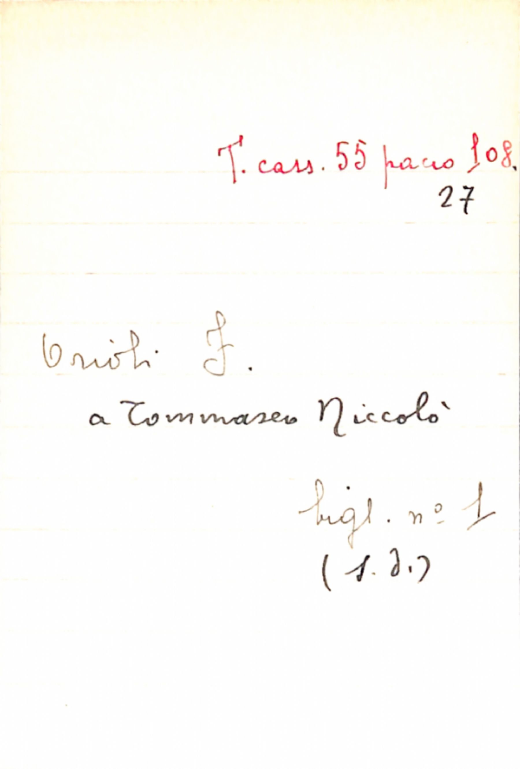 Fascicolo Orioli, F. a Tommaseo, Niccolò