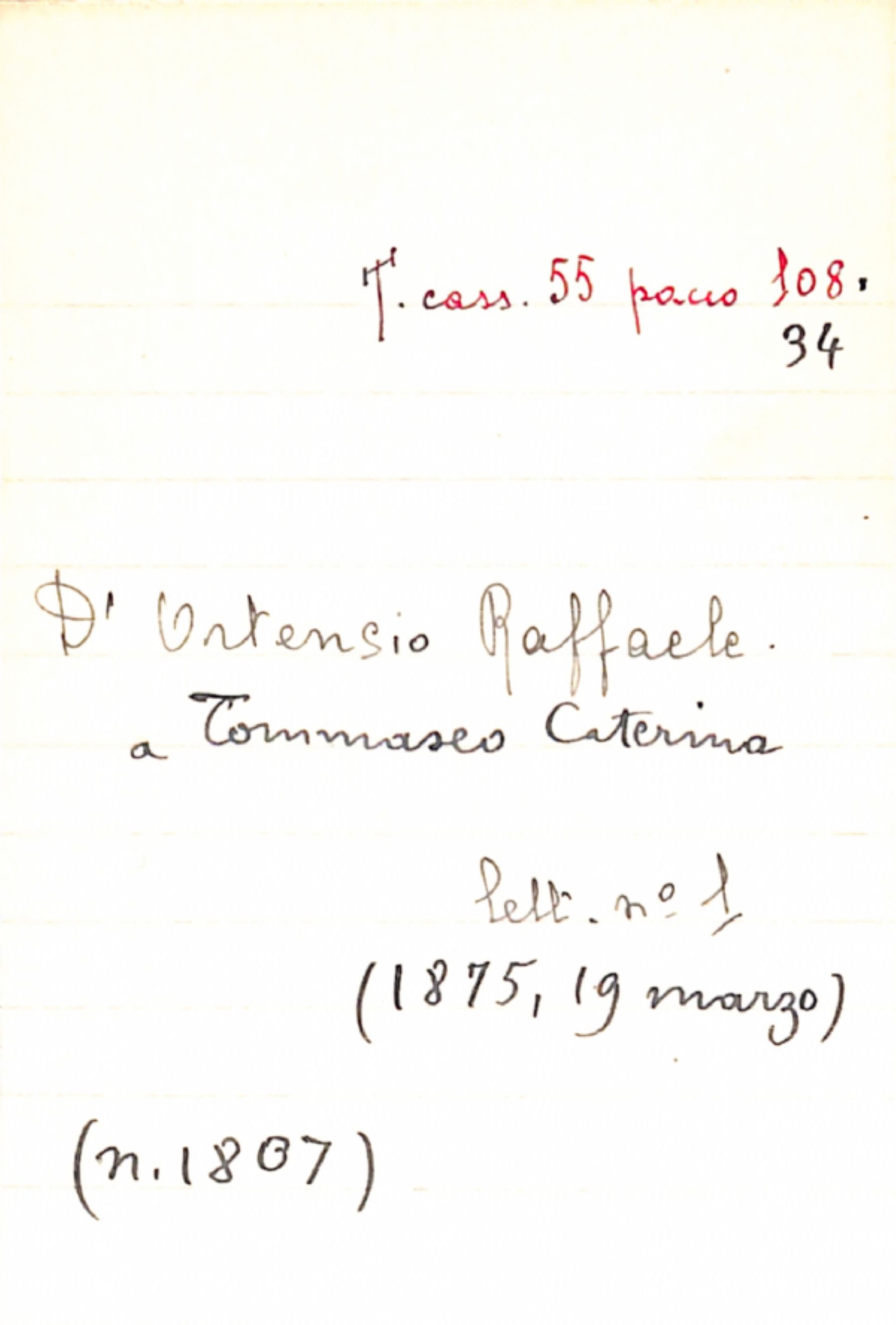 Fascicolo D'Ortensio, Raffaele a Tommaseo, Caterina