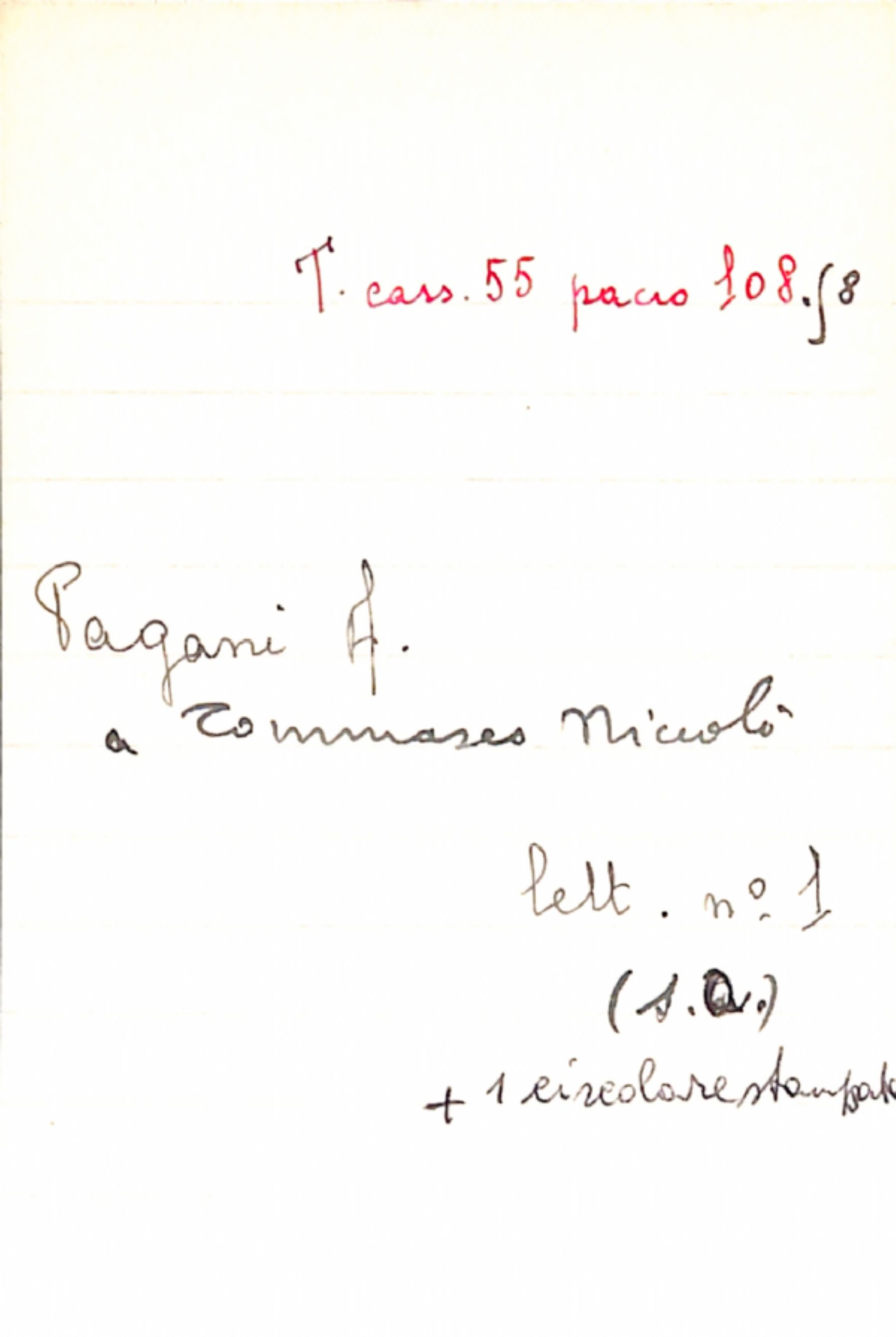 Fascicolo Pagani, A. a Tommaseo, Niccolò