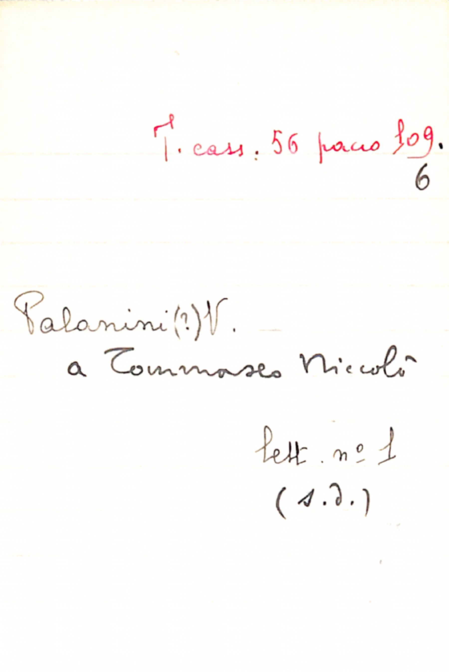 Fascicolo Palanini (?), V. a Tommaseo, Niccolò