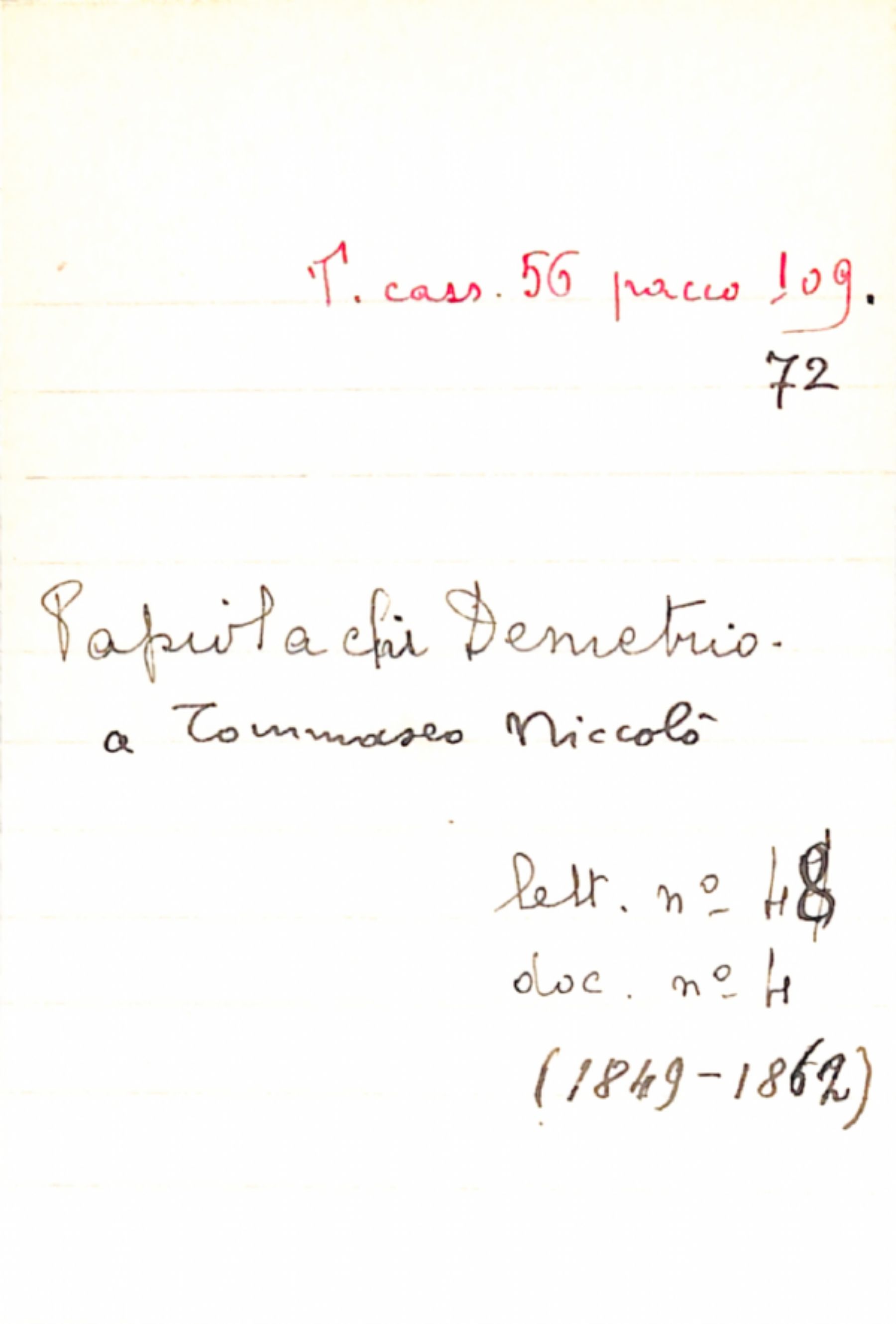 Fascicolo Papiolachi, Demetrio a Tommaseo, Niccolò