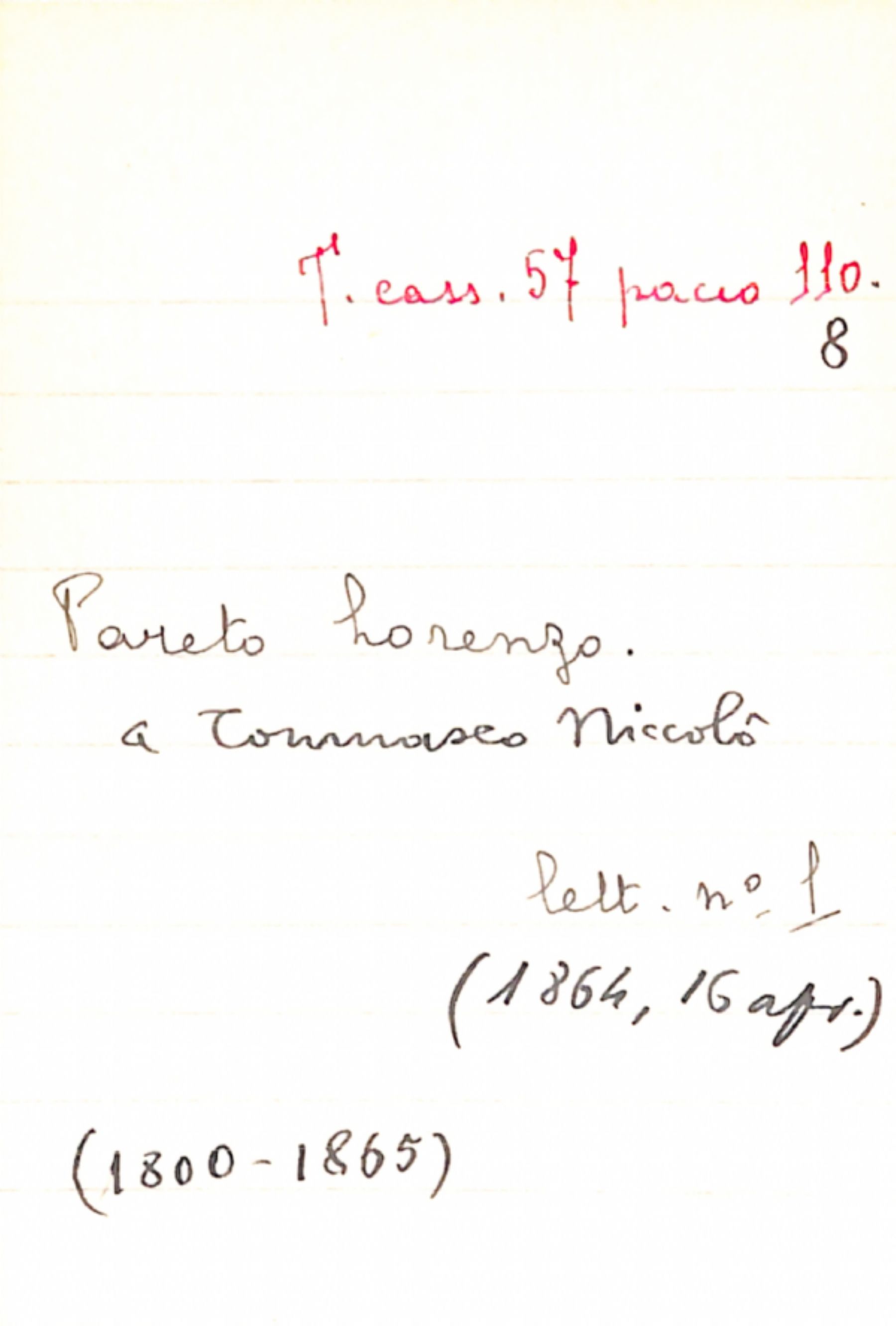 Fascicolo Pareto, Lorenzo a Tommaseo, Niccolò