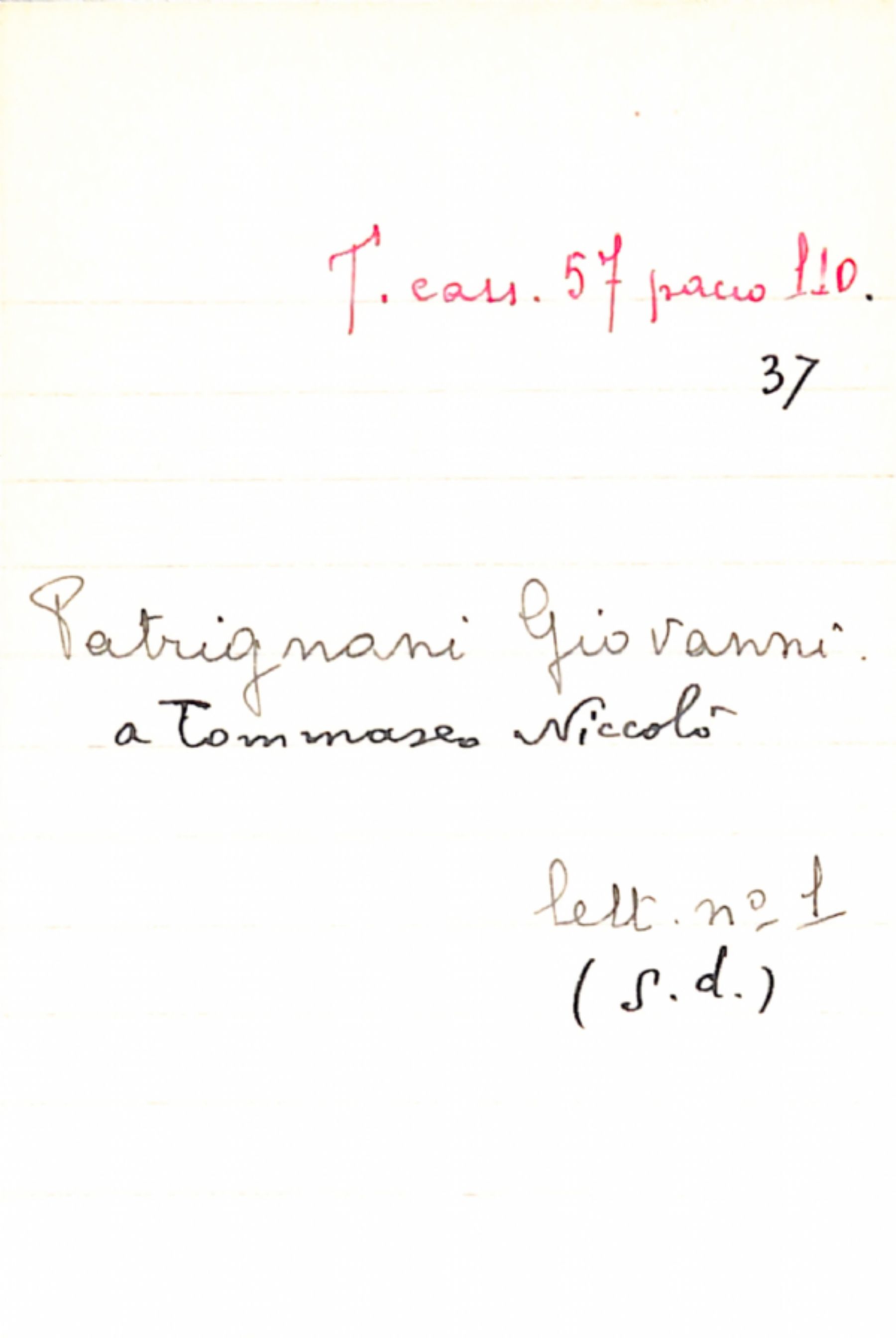 Fascicolo Patrignani, Giovanni a Tommaseo, Niccolò